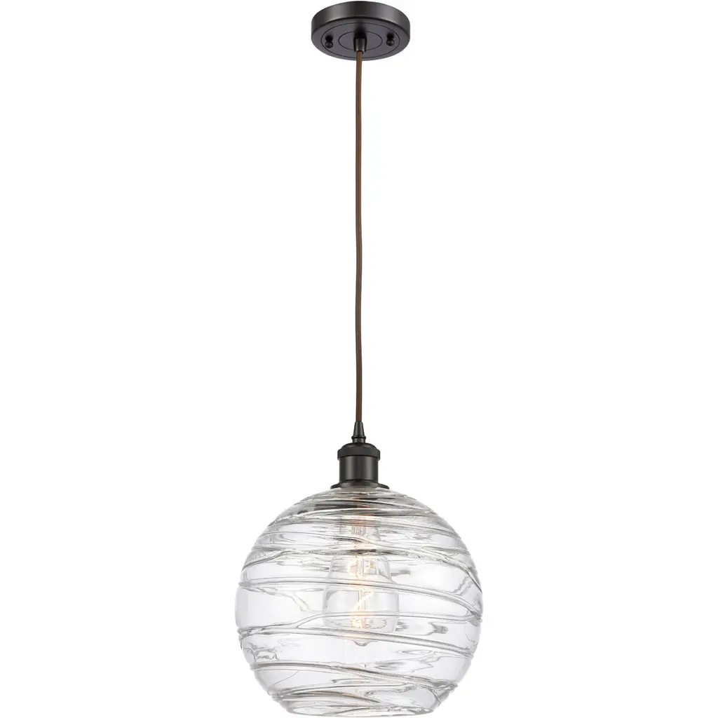 The Large Deco Swirl 1 Light Pendant is part of the Ballston Collection. Includes 1-6 and 2-12 inch Stems. Additional Stems sold separately. Solid Brass 90 Degree Hang Straight Swivel for Sloped Ceilings Included