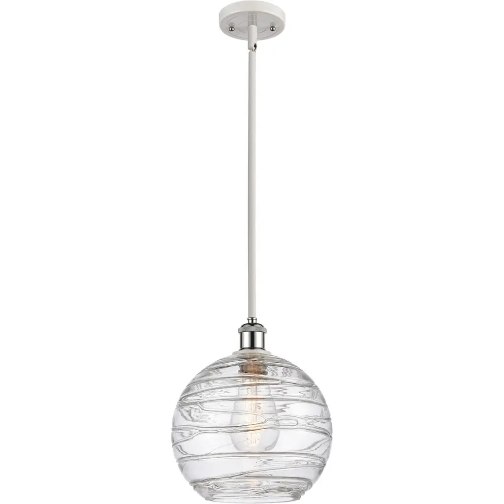 The Large Deco Swirl 1 Light Pendant is part of the Ballston Collection. Includes 1-6 and 2-12 inch Stems. Additional Stems sold separately. Solid Brass 90 Degree Hang Straight Swivel for Sloped Ceilings Included