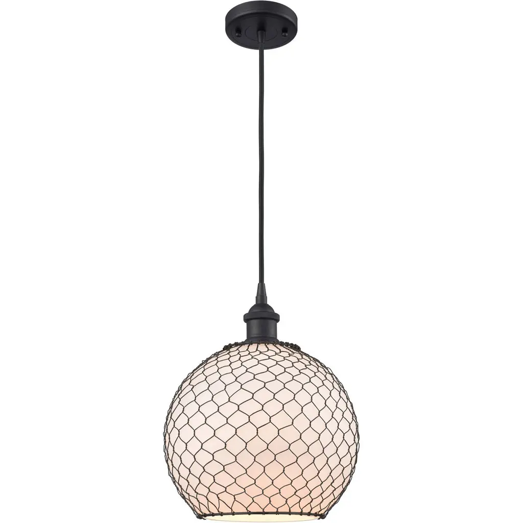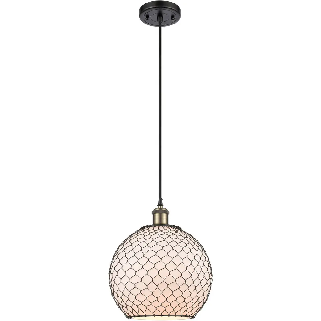 The Large Farmhouse Chicken Wire 1 Light Mini Pendant is part of the Ballston Collection. Includes 10 Feet Brown Wire