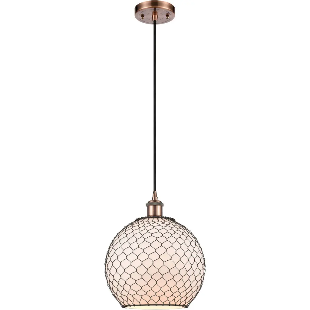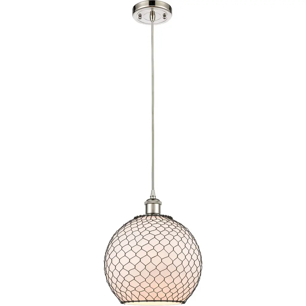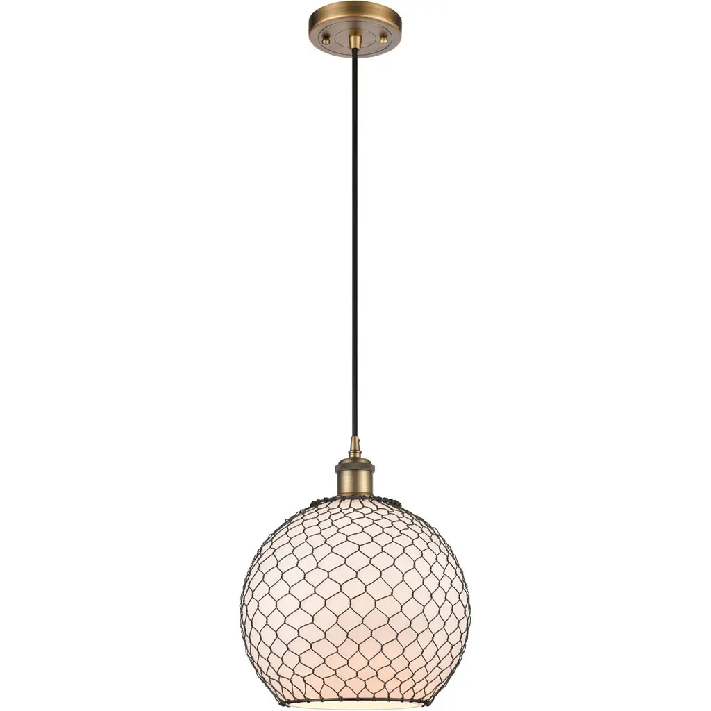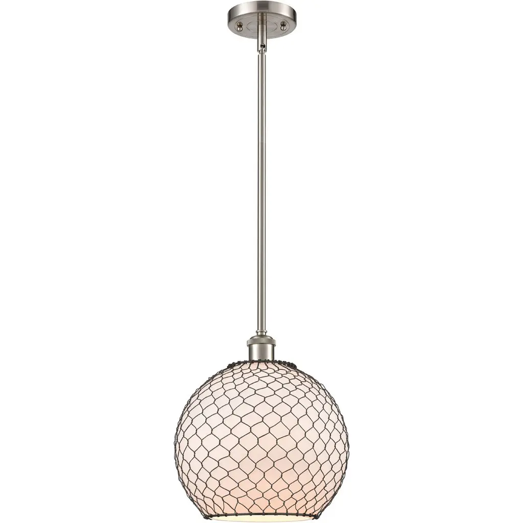 The Large Farmhouse Chicken Wire 1 Light Pendant is part of the Ballston Collection. Includes 1-6 and 2-12 inch Stems With Solid Brass 90 Degree Hang Straight Swivel for Sloped Ceilings. Solid Brass 90 Degree Hang Straight Swivel for Sloped Ceilings Included