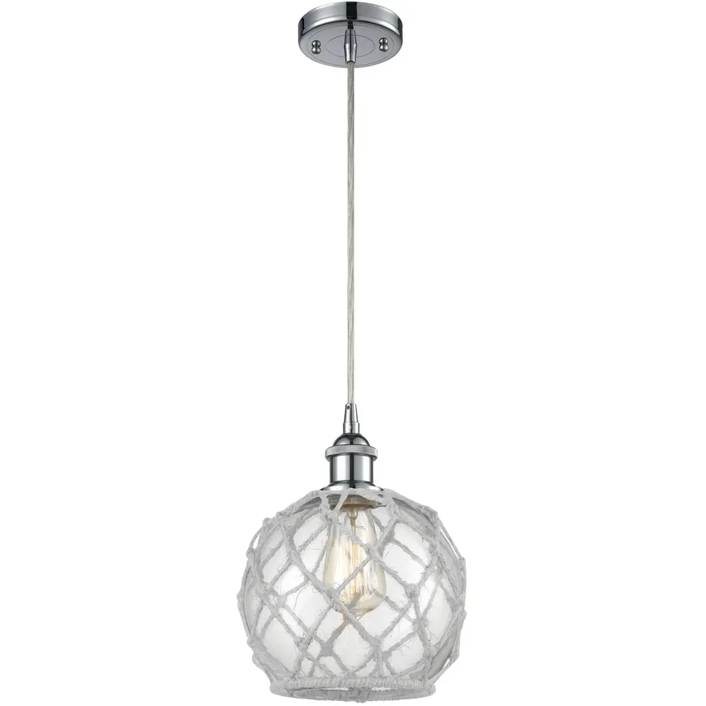 Ballston Large Farmhouse Rope Led 10 Inch Brushed Satin Nickel Pendant Ceiling Light In Clear Glass With White Rope, Ballston