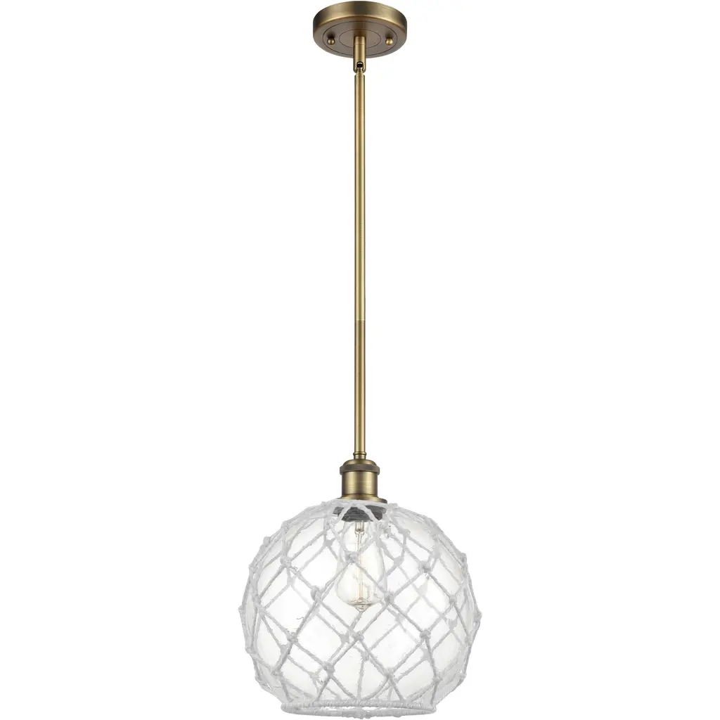 The Large Farmhouse Rope 1 Light Pendant is part of the Ballston Collection. Includes 1-6 and 2-12 inch Stems With Solid Brass 90 Degree Hang Straight Swivel for Sloped Ceilings. Solid Brass 90 Degree Hang Straight Swivel for Sloped Ceilings Included