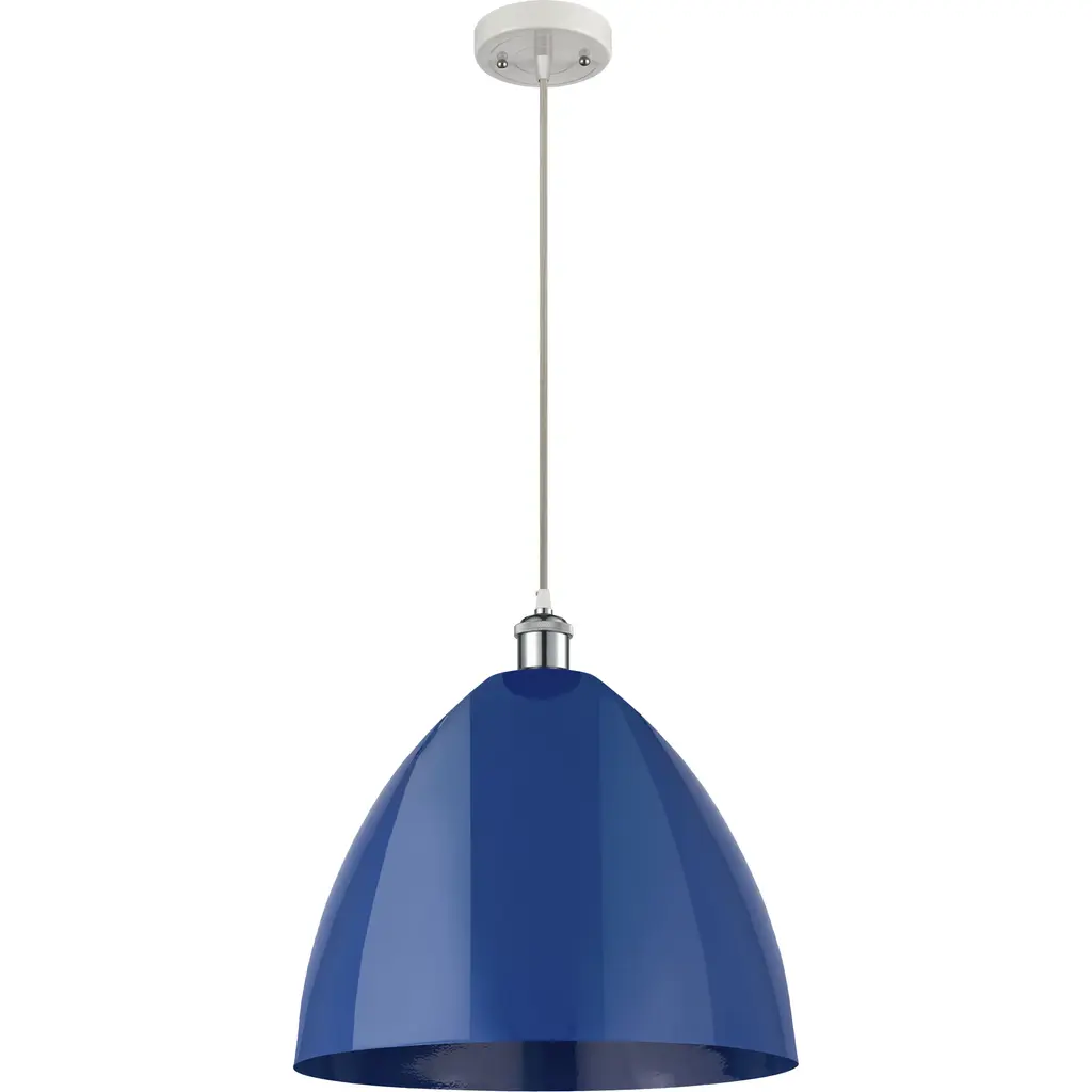 Ballston Plymouth Dome 1 Light 16 Inch Polished Chrome Mini Pendant Ceiling Light In Matte Blue