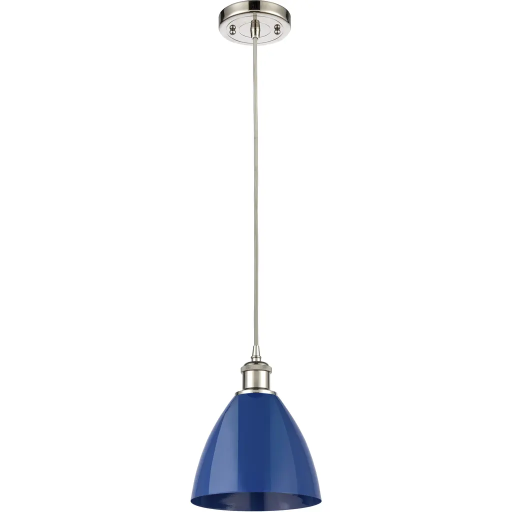Ballston Plymouth Dome 1 Light 8 Inch Polished Chrome Mini Pendant Ceiling Light In Matte Blue