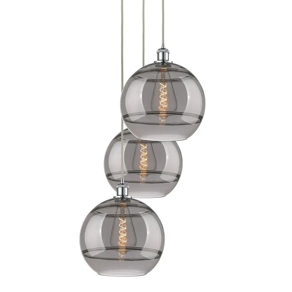 Ballston Rochester 3 Light 18.5 Inch Polished Chrome Cord Hung Multi Pendant Ceiling Light