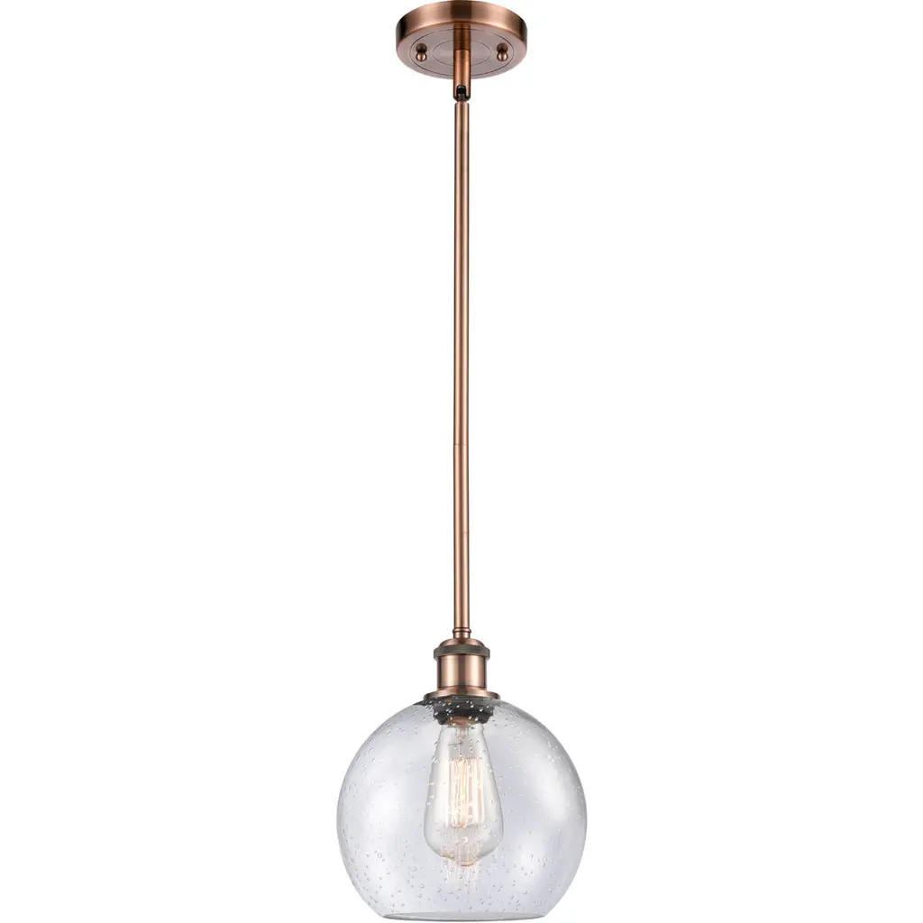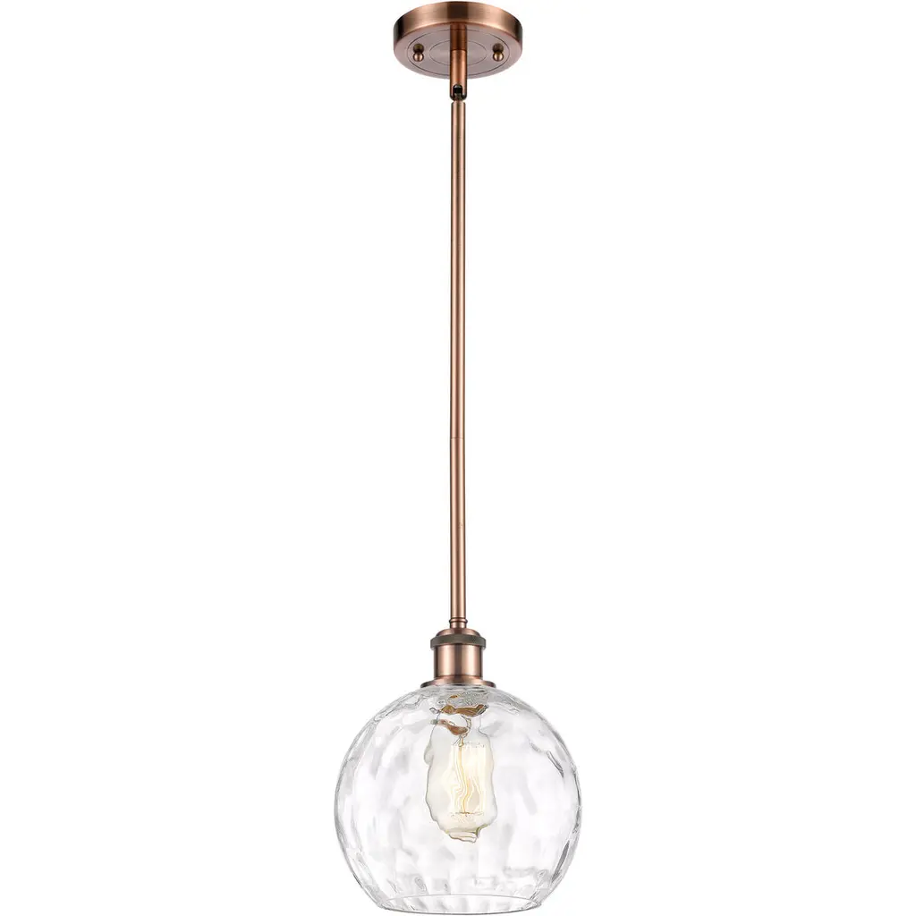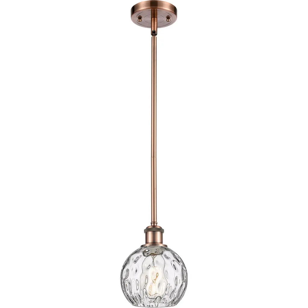 The Small Deco Swirl 1 Light Pendant is part of the Ballston Collection. Includes 1-6 and 2-12 inch Stems With Solid Brass 90 Degree Hang Straight Swivel for Sloped Ceilings. Solid Brass 90 Degree Hang Straight Swivel for Sloped Ceilings Included