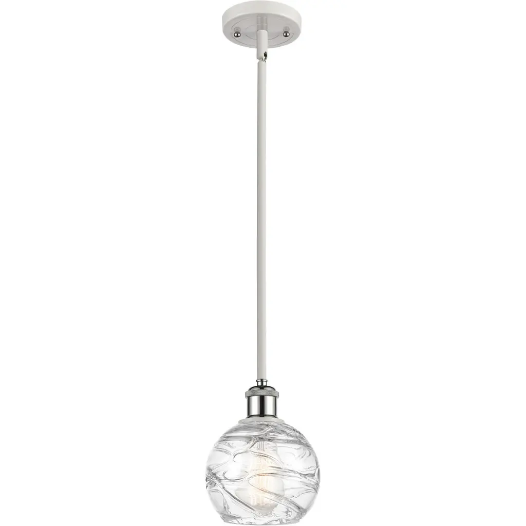 The Small Deco Swirl 1 Light Pendant is part of the Ballston Collection. Includes 1-6 and 2-12 inch Stems With Solid Brass 90 Degree Hang Straight Swivel for Sloped Ceilings. Solid Brass 90 Degree Hang Straight Swivel for Sloped Ceilings Included