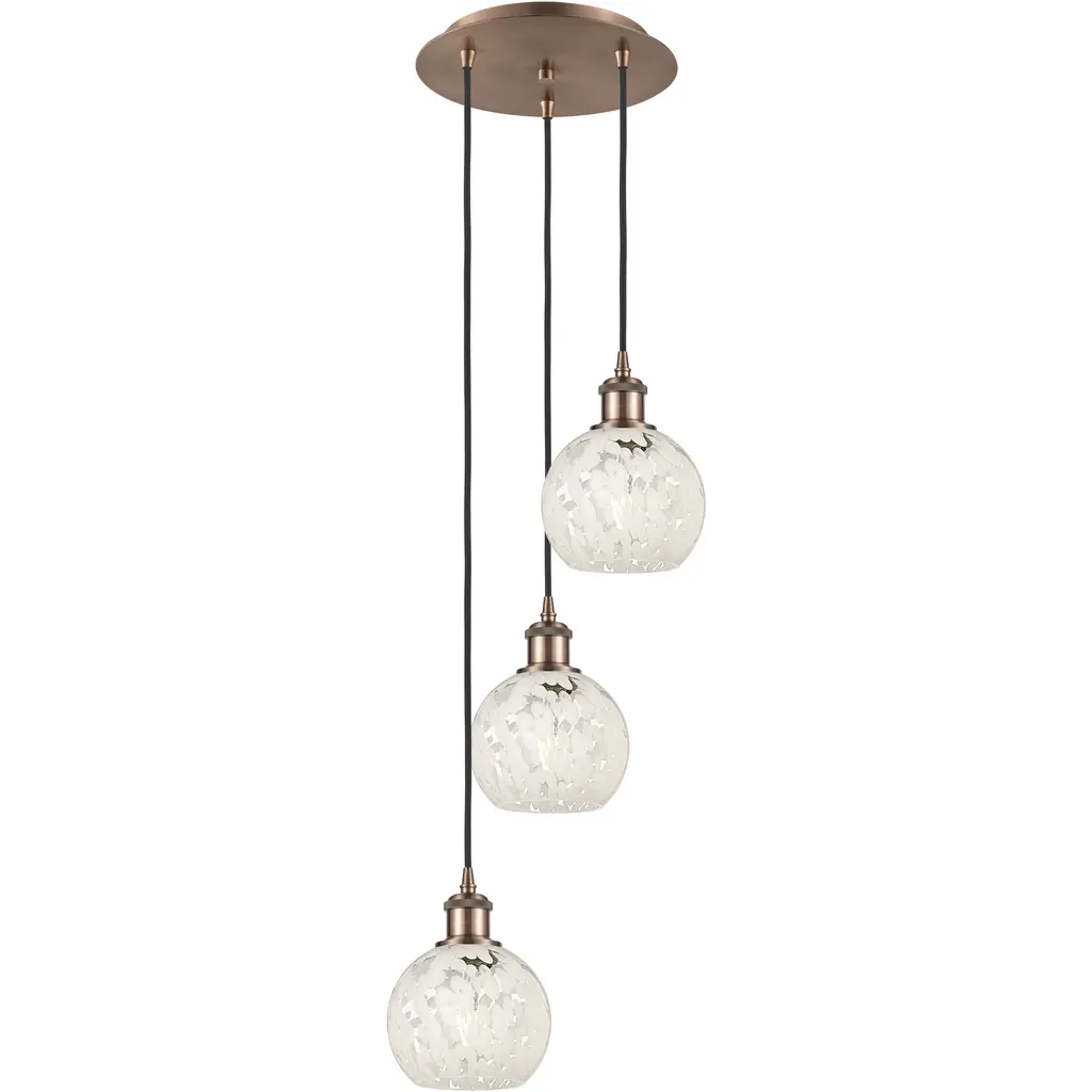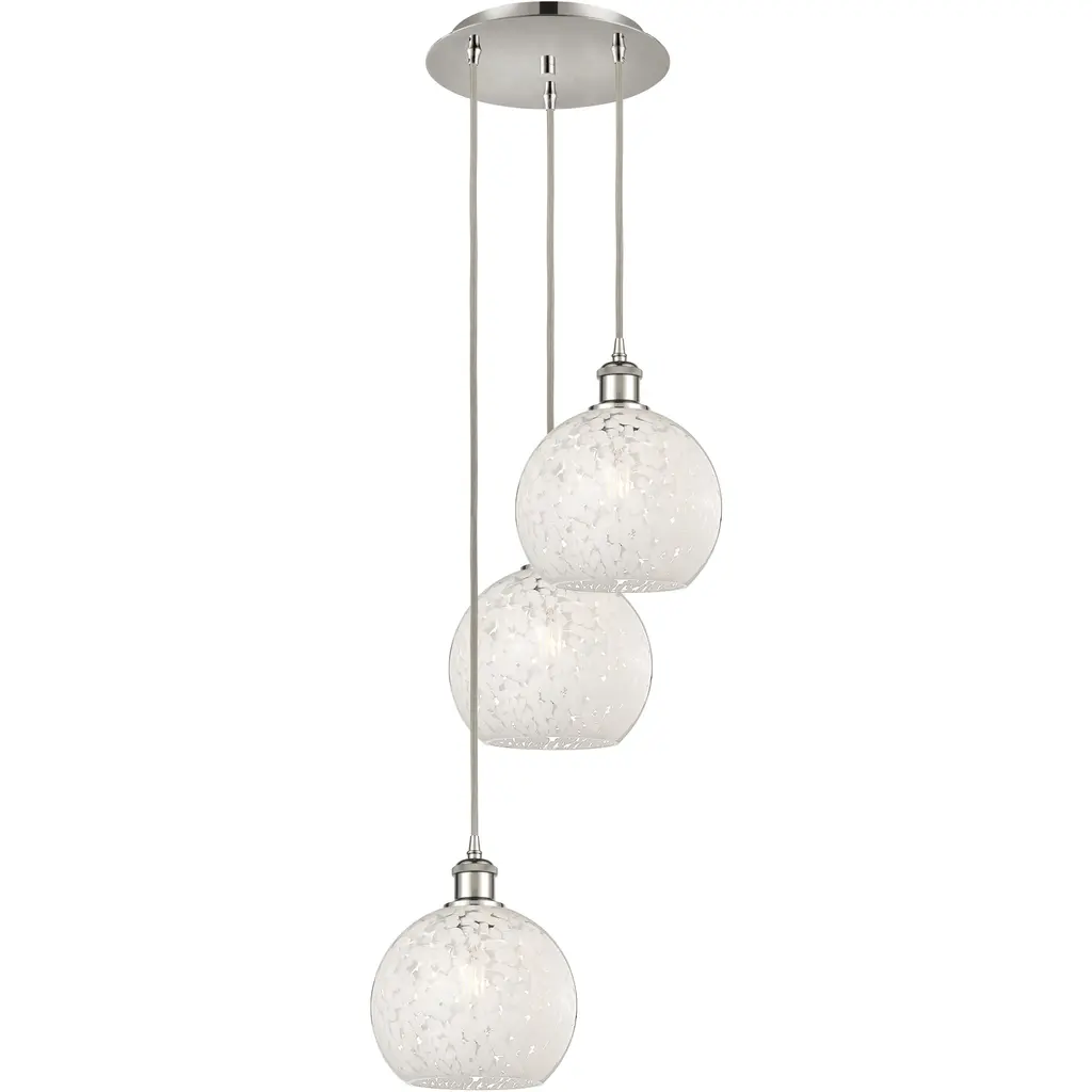 Ballston White Mouchette 3 Light 12.5 Inch Brushed Satin Nickel Cord Hung Multi Pendant Ceiling Light