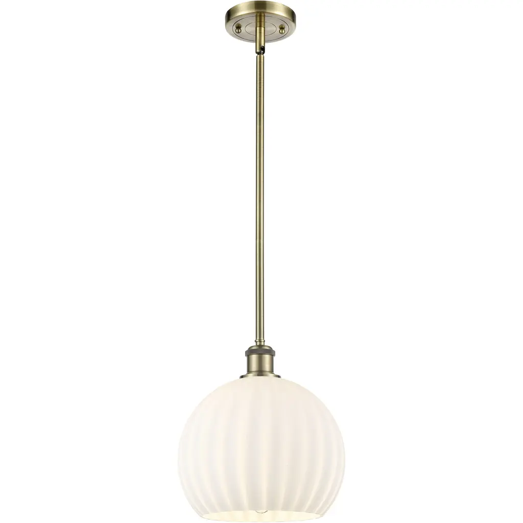 Ballston White Venetian 1 Light 10 Inch Satin Gold Stem Hung Mini Pendant Ceiling Light