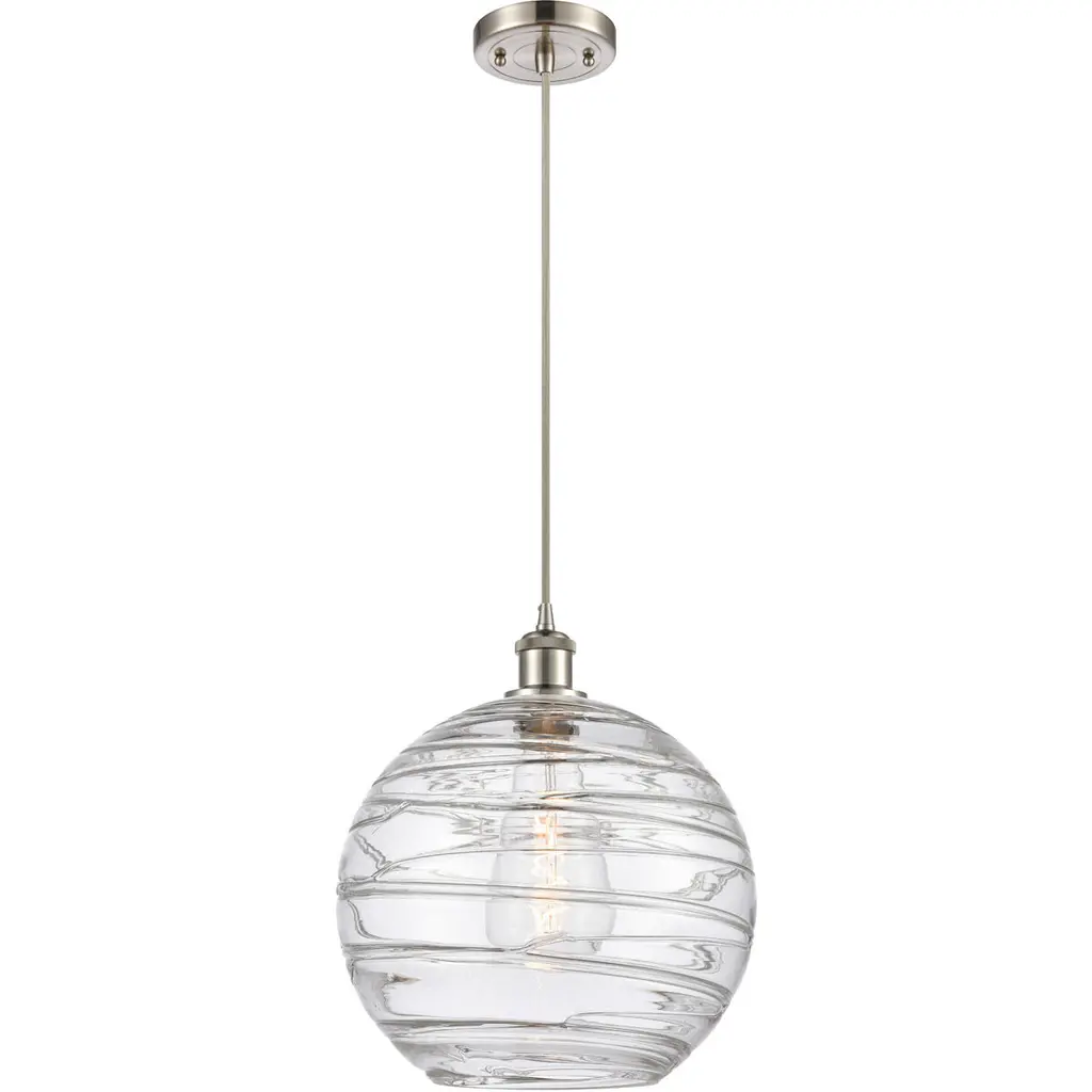 The X-Large Deco Swirl 1 Light Pendant is part of the Ballston Collection. Includes 1-6 and 2-12 inch Stems With Solid Brass 90 Degree Hang Straight Swivel for Sloped Ceilings. Solid Brass 90 Degree Hang Straight Swivel for Sloped Ceilings Included