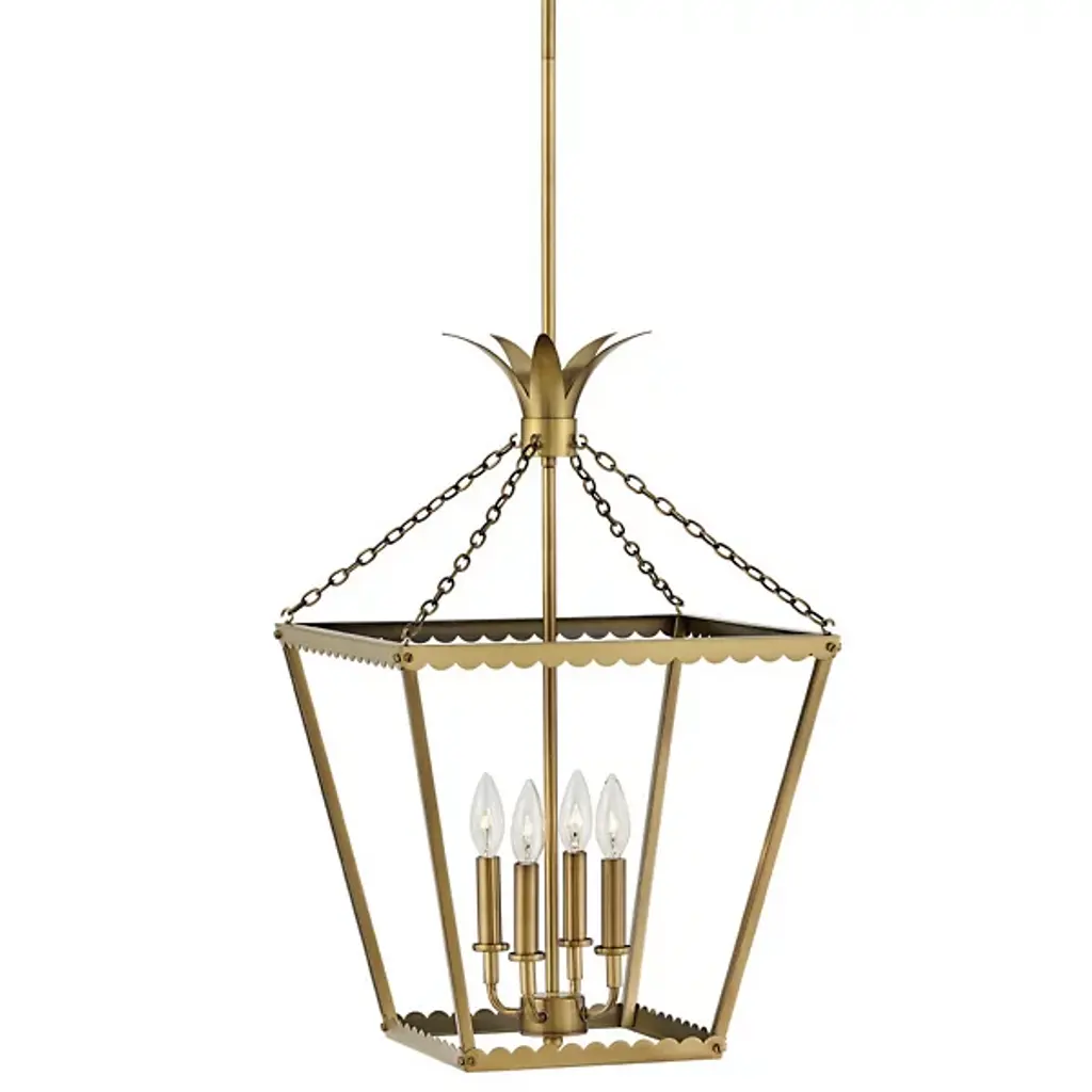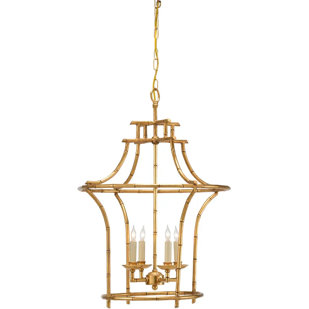 The Bamboo Pendant from Chelsea House reinterprets nature's organic patterns through metalwork. Crafted with joints and segments mimicking real bamboo stalks, this pendant creates a pagoda-like framework that houses four candle-style lights. The curved upper section transitions gracefully into an angular lower portion, establishing rhythm through repetitive elements. Light reflects off the metallic surfaces, enhancing the pendant's dimensional quality. Chelsea House artisans have captured bamboo's characteristic nodes and segments with remarkable authenticity in this nature-inspired fixture. The pendant's open design allows illumination to flow unobstructed, casting gentle patterns across surrounding surfaces.