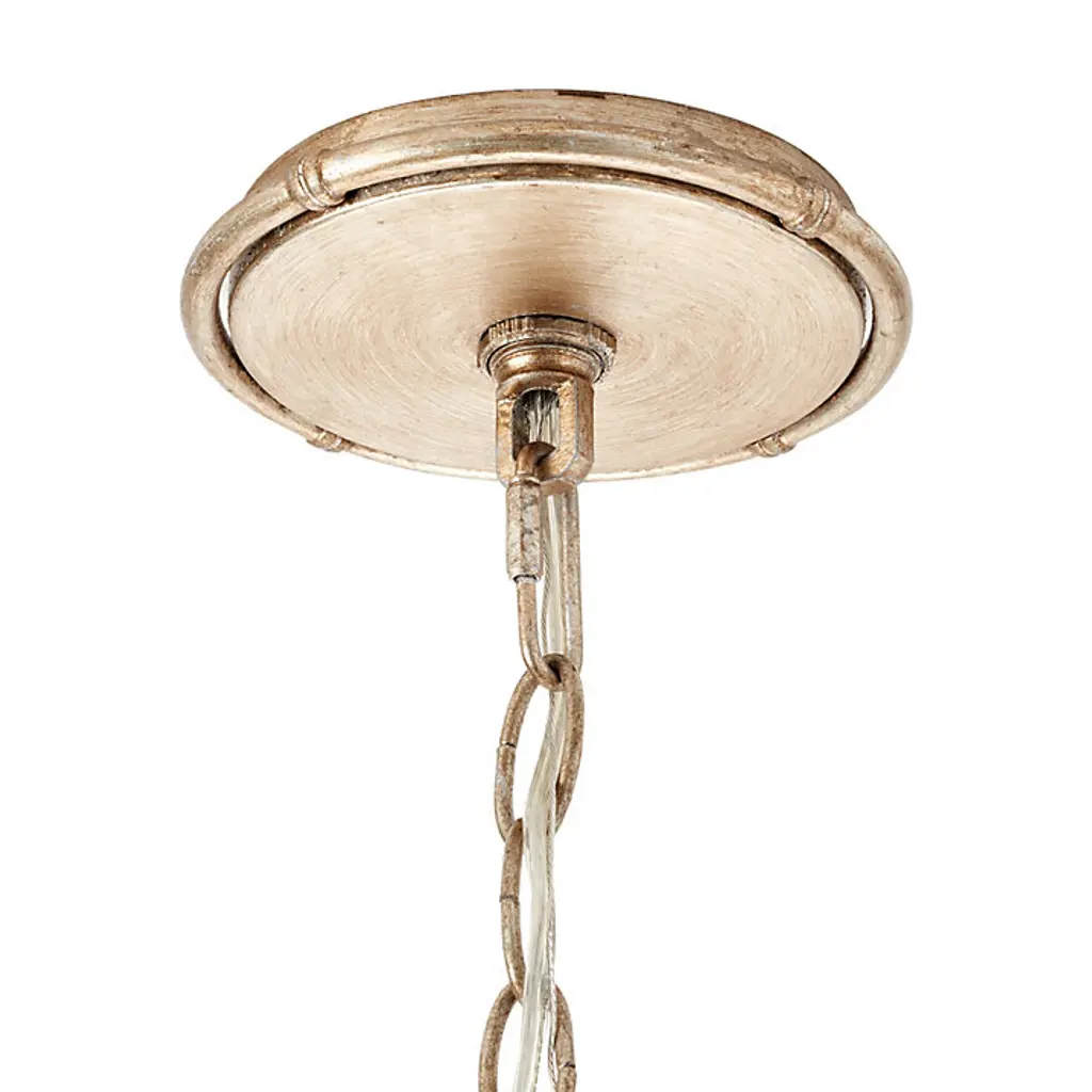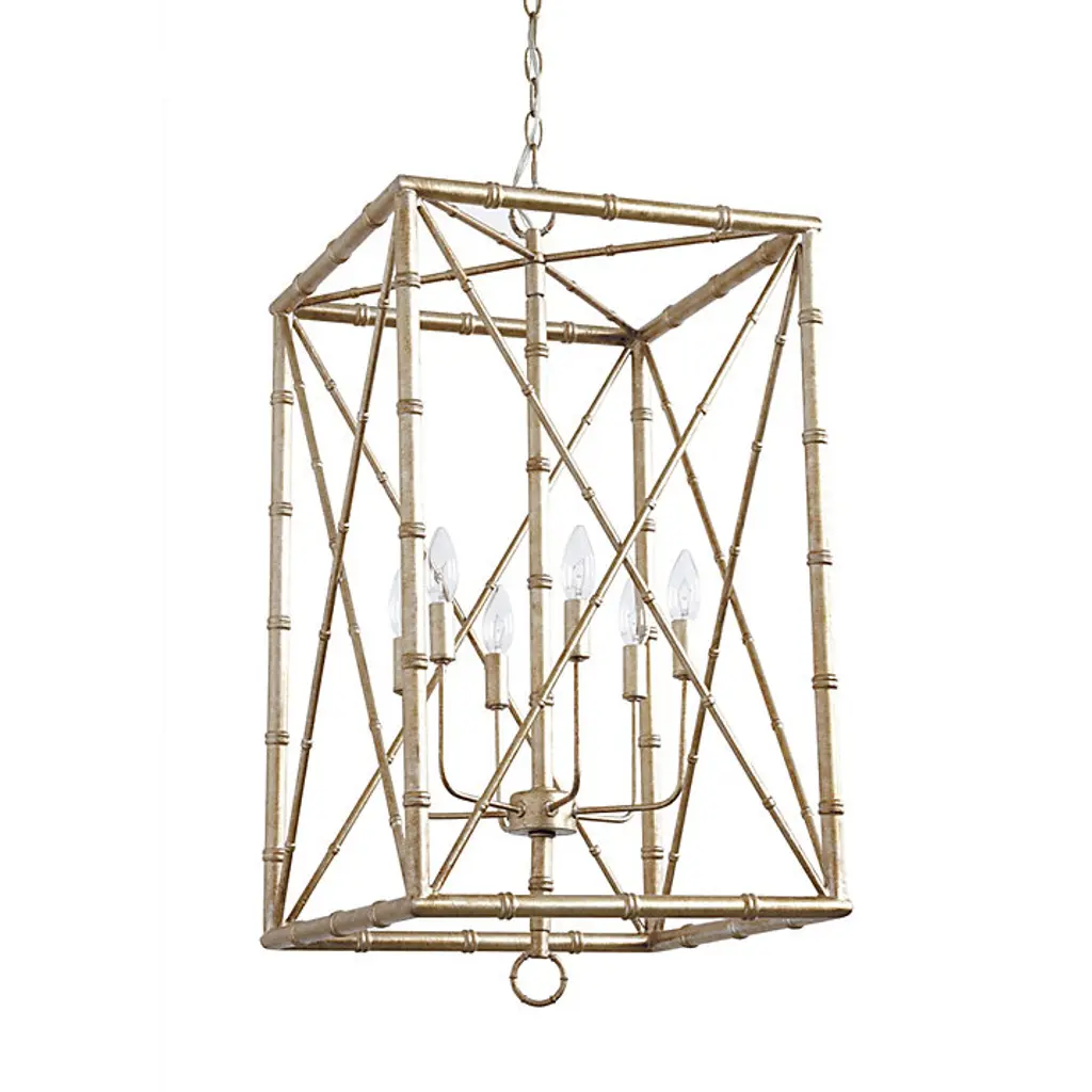Add global sophistication to any space with our Bamboo Rectangular Sconce. The Asian-inspired bamboo textures are warmed with a glowing champagne finish. Six slender candle arms create soft, generous light. Bamboo Rectangular Pendant features: