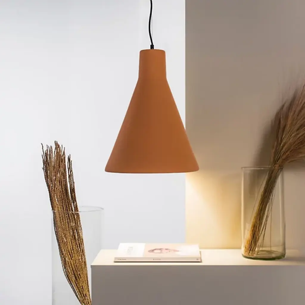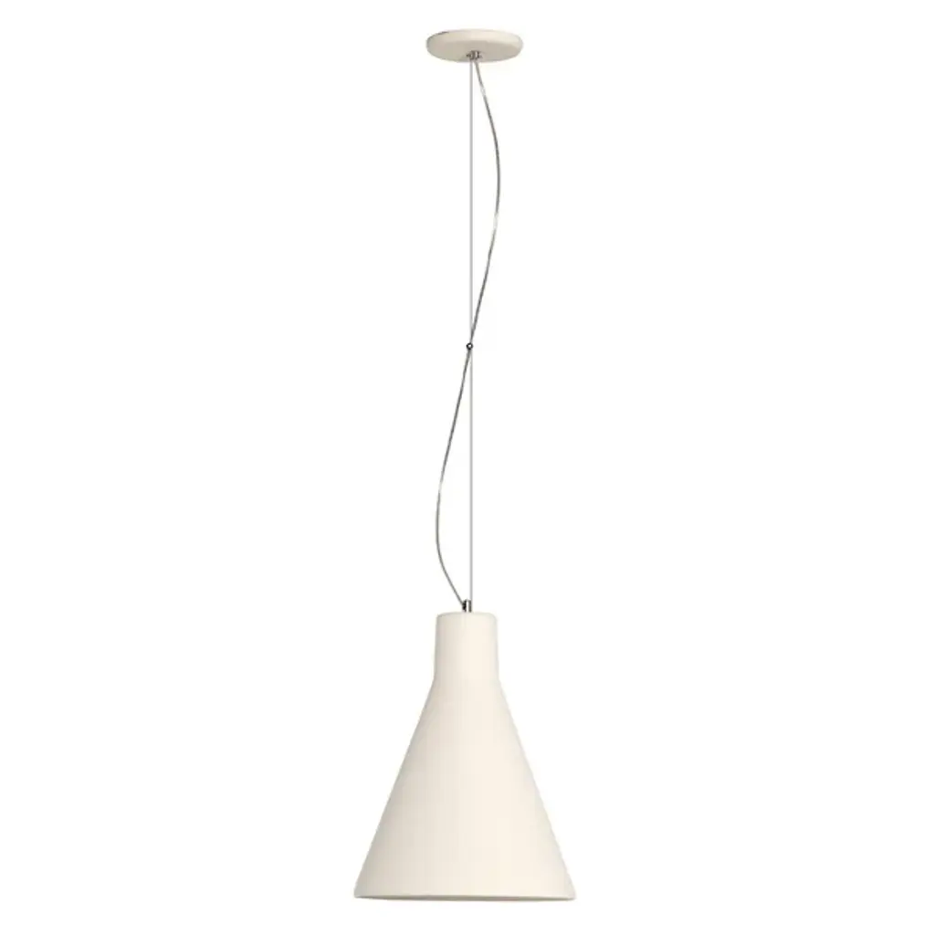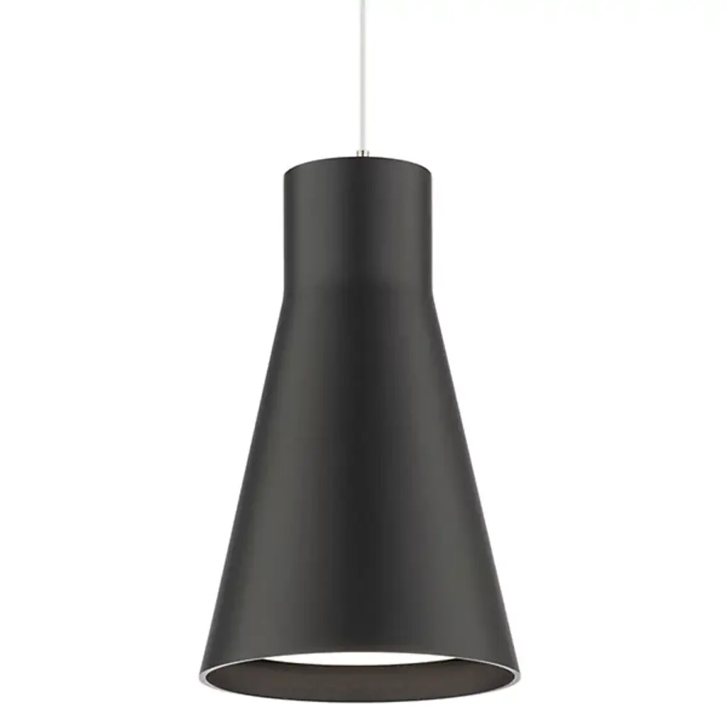 The Barcelona Pendant from Geo Contemporary presents a classic conical shape with a modern twist. Its elongated form tapers gracefully from a narrow top to a wider base, creating a sense of fluid movement. Suspended by two slender cables that cross at the top, the Barcelona combines functionality with artistic flair. The pendant's shape allows for focused downlighting, making it perfect for task areas or creating intimate lighting zones.