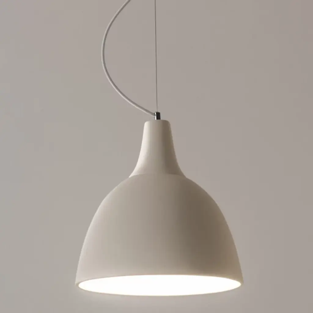 The Bari Pendant from Geo Contemporary reinvents illumination with its bell-shaped ceramic shade. The fixture's curvy shape flows gracefully from a narrow neck to a wide base, creating a focused yet diffused light distribution. Its suspended design incorporates an ingenious S-shaped cable system, allowing for adjustable hanging heights. The pendant's smooth surface contrasts beautifully with the textured ceiling canopy, creating a dynamic interplay between different ceramic finishes.