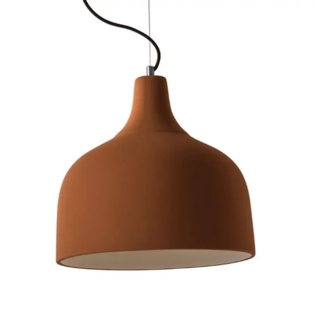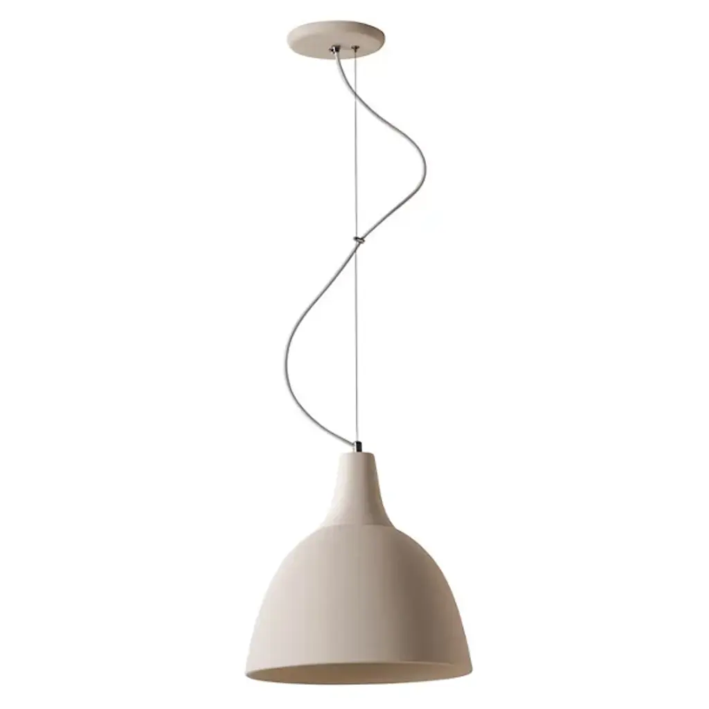 The Bari Pendant from Geo Contemporary reinvents illumination with its bell-shaped ceramic shade. The fixture's curvy shape flows gracefully from a narrow neck to a wide base, creating a focused yet diffused light distribution. Its suspended design incorporates an ingenious S-shaped cable system, allowing for adjustable hanging heights. The pendant's smooth surface contrasts beautifully with the textured ceiling canopy, creating a dynamic interplay between different ceramic finishes.