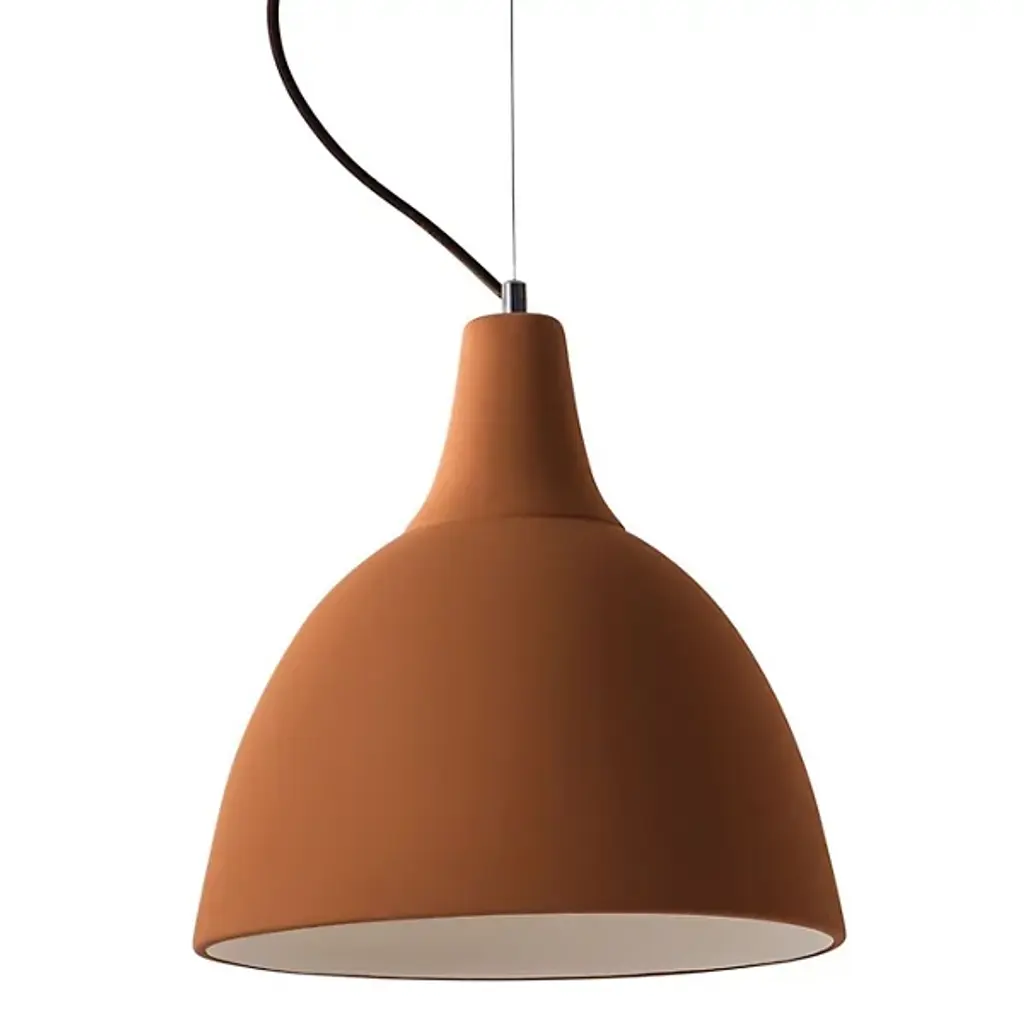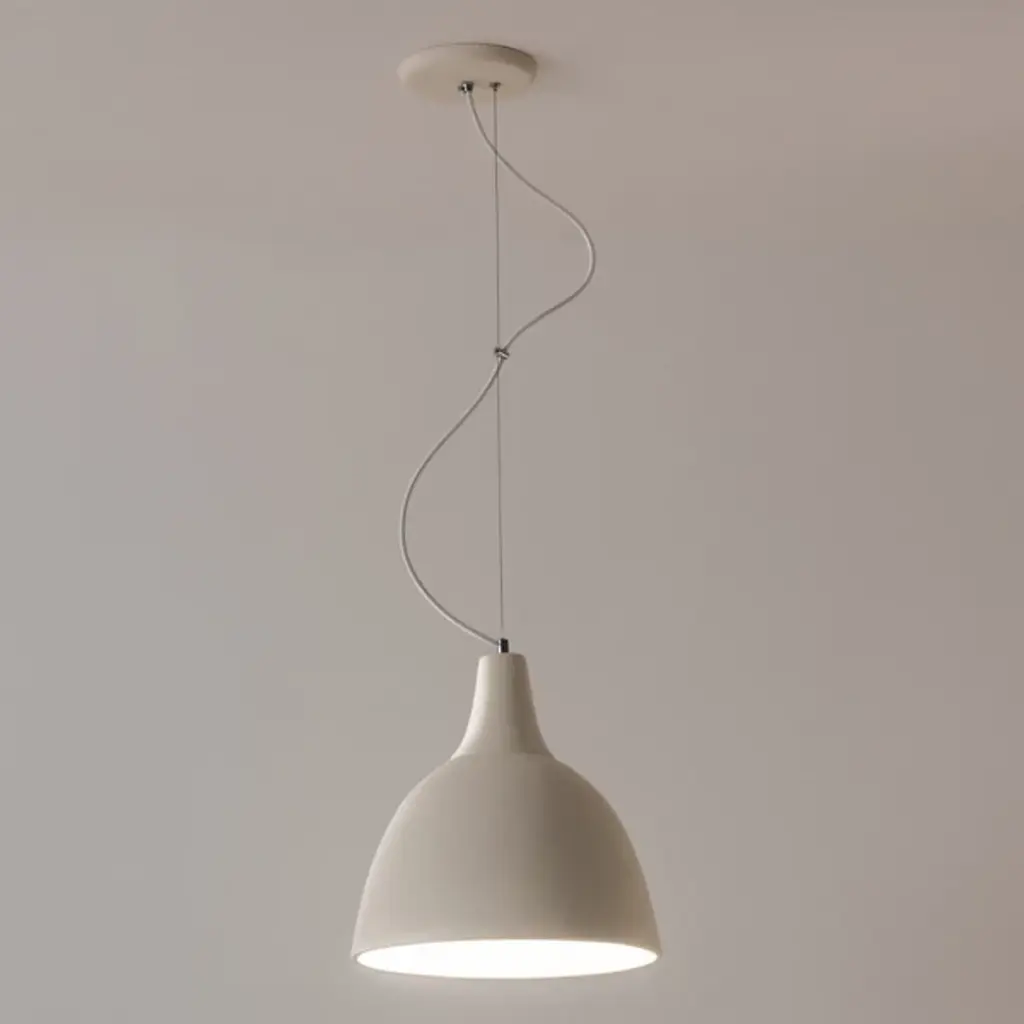 The Bari Pendant from Geo Contemporary reinvents illumination with its bell-shaped ceramic shade. The fixture's curvy shape flows gracefully from a narrow neck to a wide base, creating a focused yet diffused light distribution. Its suspended design incorporates an ingenious S-shaped cable system, allowing for adjustable hanging heights. The pendant's smooth surface contrasts beautifully with the textured ceiling canopy, creating a dynamic interplay between different ceramic finishes.