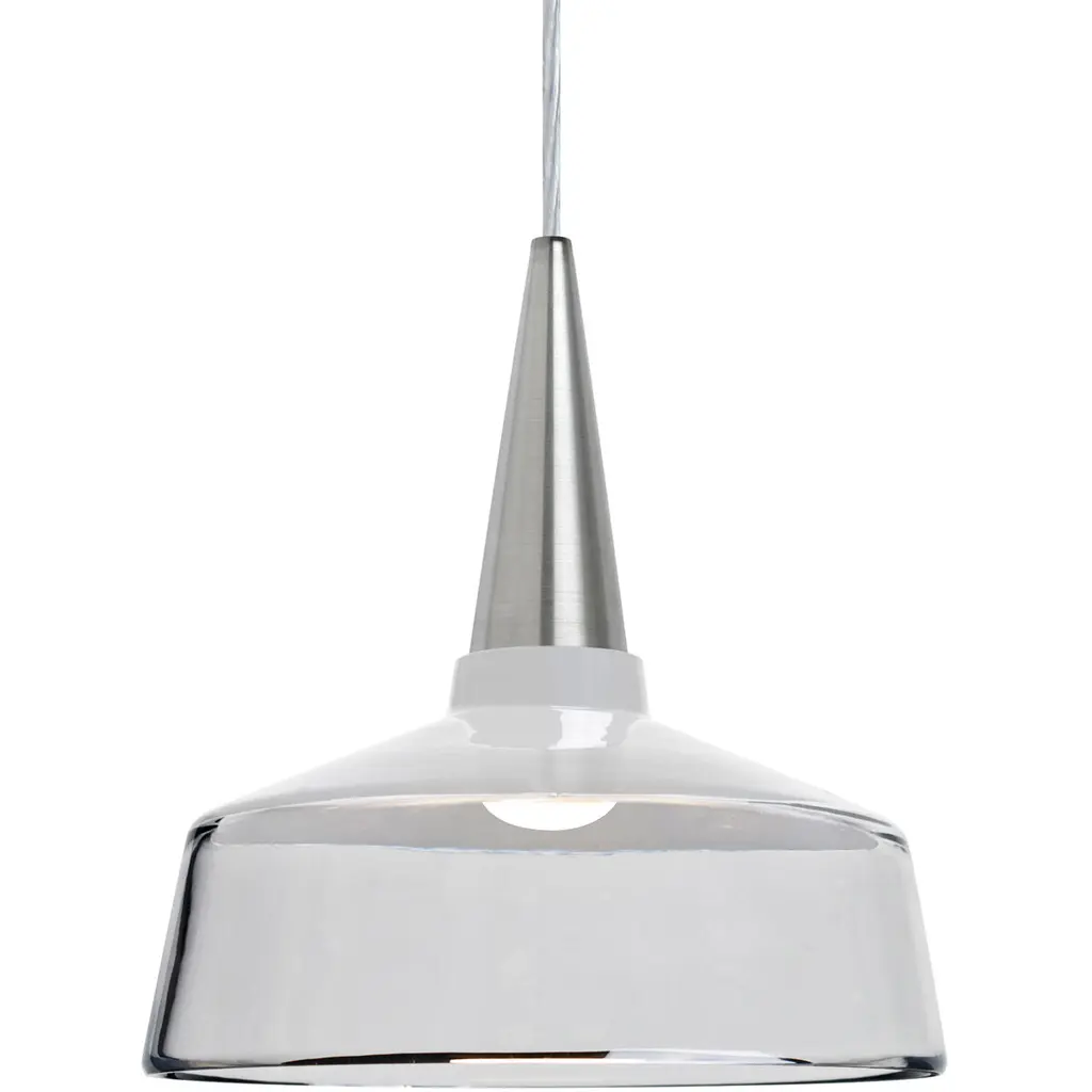 The urban inspired Baron 10 Pendant employs a gloss black RLM style shade with a lower transparent glass accent, semi-concealing a frosted downlight source for effective task lighting and a hint of peripheral brightness. Produced in a theme inspired by the nostalgic trends of today, this pendant offers a look that will easily merge into industrial architecture. The cord pendant fixture is equipped with a 10' SVT cordset and a low profile flat monopoint canopy. These stylish and functional luminaries are offered in a beautiful Satin Nickel finish.