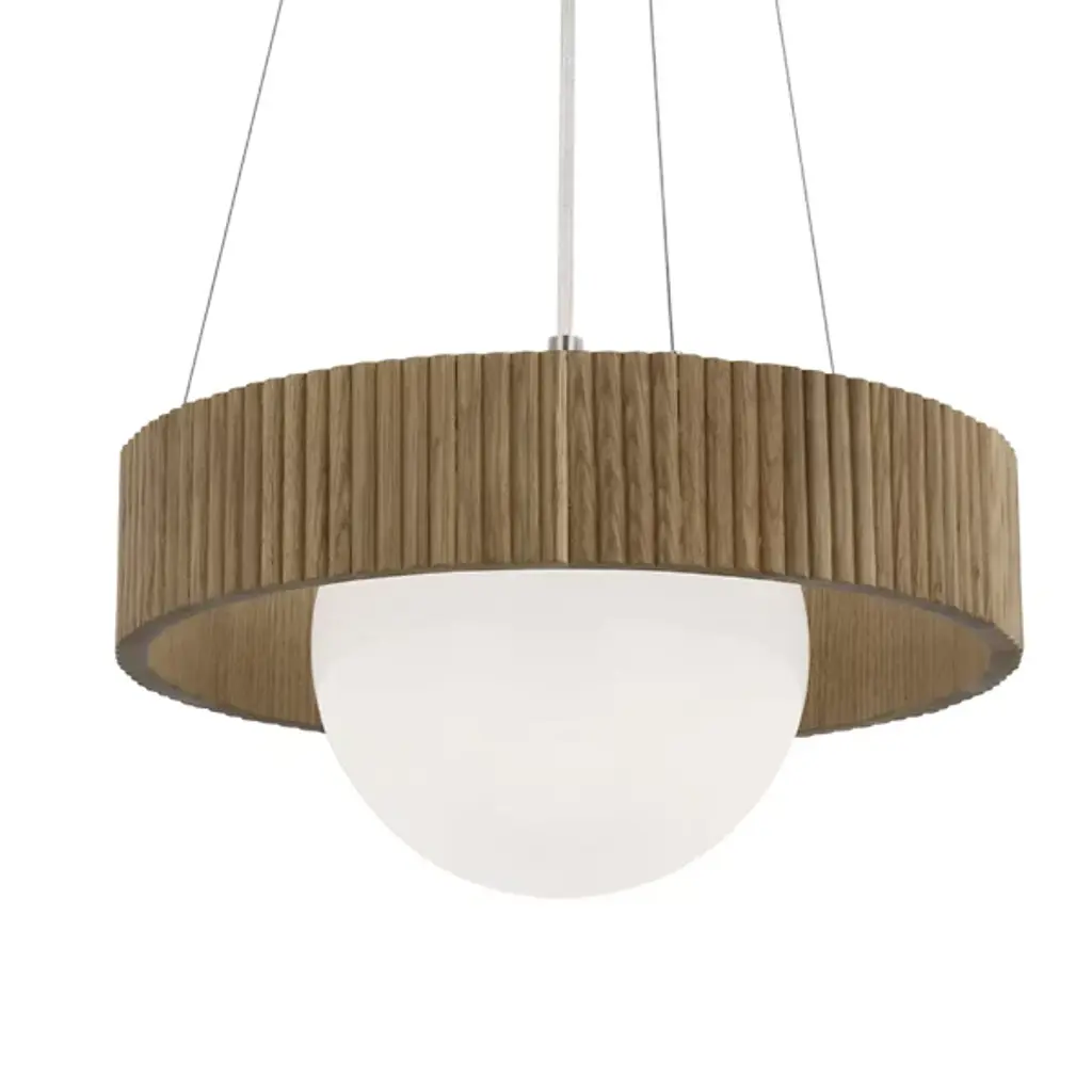 Go big at home with the robust lines and solid size of the Barrel Drum Pendant from Accord Lighting. Resembling a flattened keg, it’s made in Brazil and uses a smooth circular ceiling mount and an array of slender wires to hold a large light housing and shade. Potent lamping is set inside a sweeping assembly of slightly curved staves that support a disc diffuser able to transform direct downlight into a more pleasant ambiance that pours out an even and wide-reaching layer of light below.