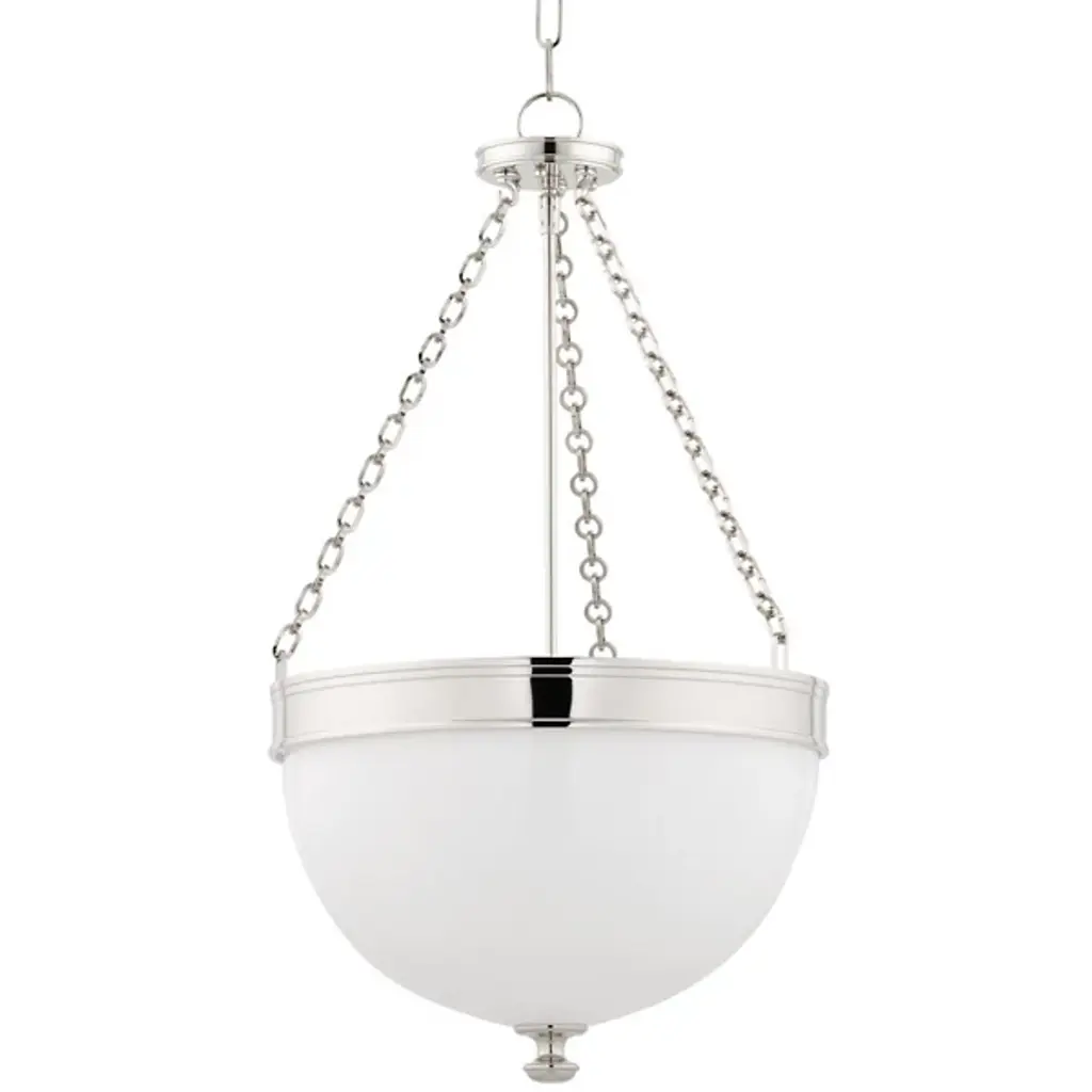 The beauty of simple lighting. The Hudson Valley Barrington Pendant is perfect for adding that touch of class to the foyer or dining room, its solid cast brass supports and chain offering a nice contrast to White Opal glass. Adjust the height to best enhance the transitional or early American styled room.