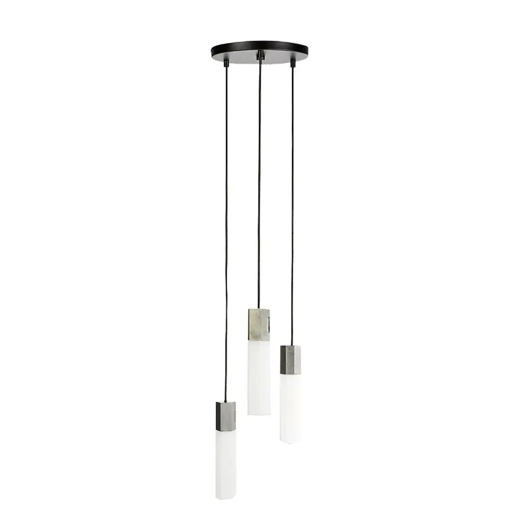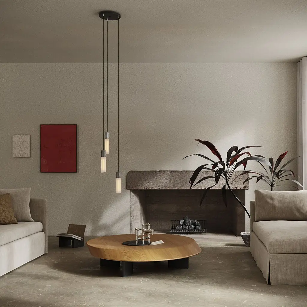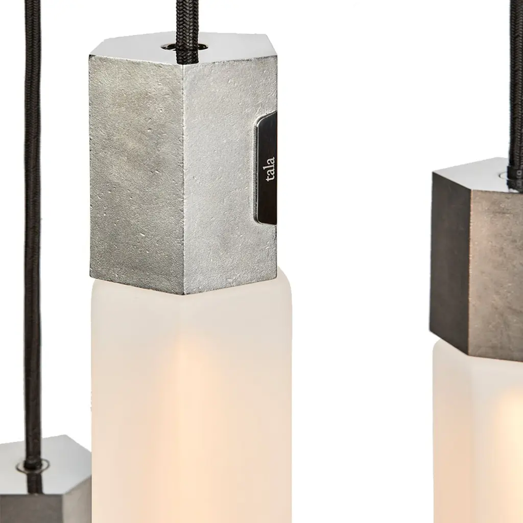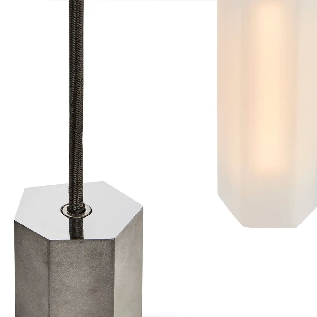 Inspired by the raw beauty of volcanic basalt, this pendant includes three bulbs of translucent mouth-blown borosilicate glass with an irregular hexagonal shape. Topping each bulb is a stainless-steel cap crafted using the lost-wax casting technique, resulting in a subtly rough-hewn texture on its six sides. Because each 5-watt LED bulb has an equivalent incandescent power of 25W, this pendant can reduce energy usage by up to 90%. Hardwired.