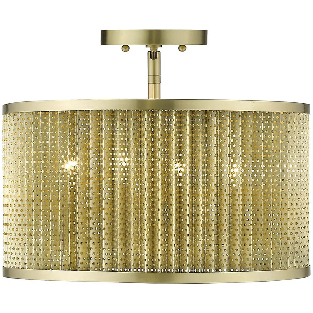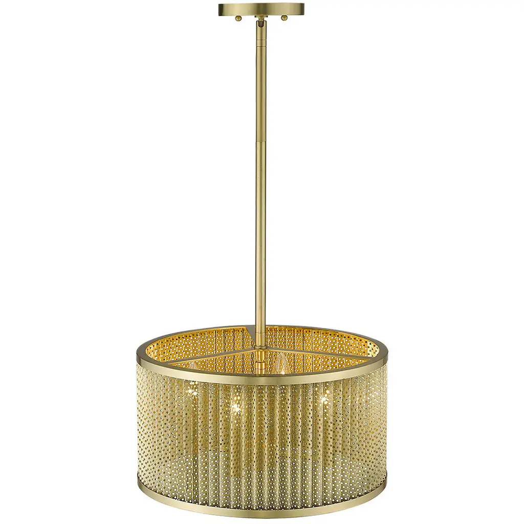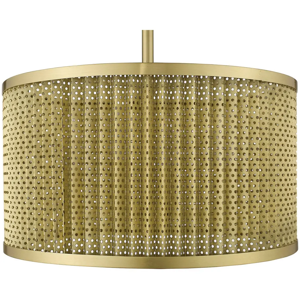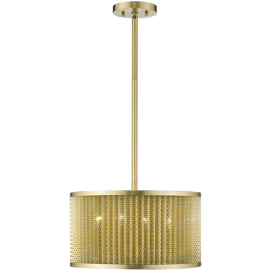 The Basetti collection of lighting features an all-metal design. A honeycomb pattern shade produces a pleasant effect on surrounding surfaces. A gorgeous, gold finish softens the look of this modern-industrial style.