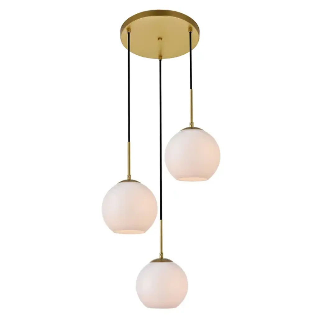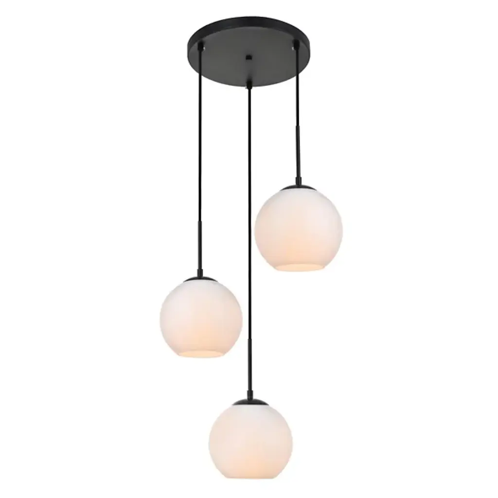 The Basia 3 Light Multi Light Pendant by Huxe combines refined style with practical functionality, infusing cosmopolitan sophistication into diverse spaces. Perfect for entryways, offices, bathrooms, bedrooms, or kitchens, this pendant showcases a sleek iron frame with a disk-shaped canopy. Providing versatility, an adjustable black cord enables flexible hanging height. Featuring a white spherical glass shade at the center, bulb replacement is effortless (filament-style bulb not included), ensuring convenient maintenance. Elevate your urban living with Basia's seamless fusion of style and convenience, making city life elegant.
