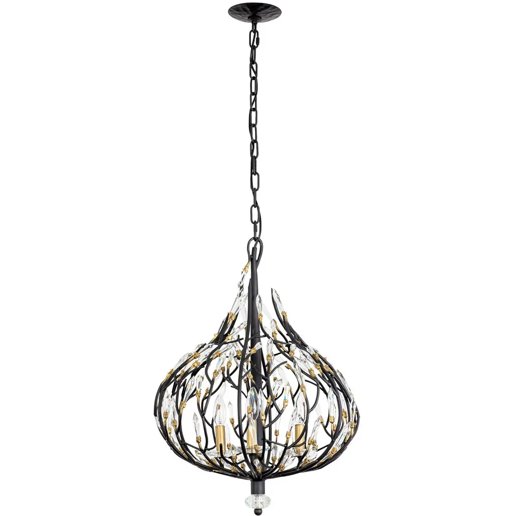 Bask is a unique crystal piece that melds together fashion influenced shapes and nature inspired details. Its pre-installed premium crystals and black with gold accents or gold dust finishes give duality with silvery sparkles and glimmering gold. This glamorous and whimsical collection is handmade using recycled steel and features unique elements, starting at the hand-hammered canopy. With stylishly sustainable choices like Bask, it’s easy to see why Varaluz was the 2018 ARTS Awards Green Award Winner.