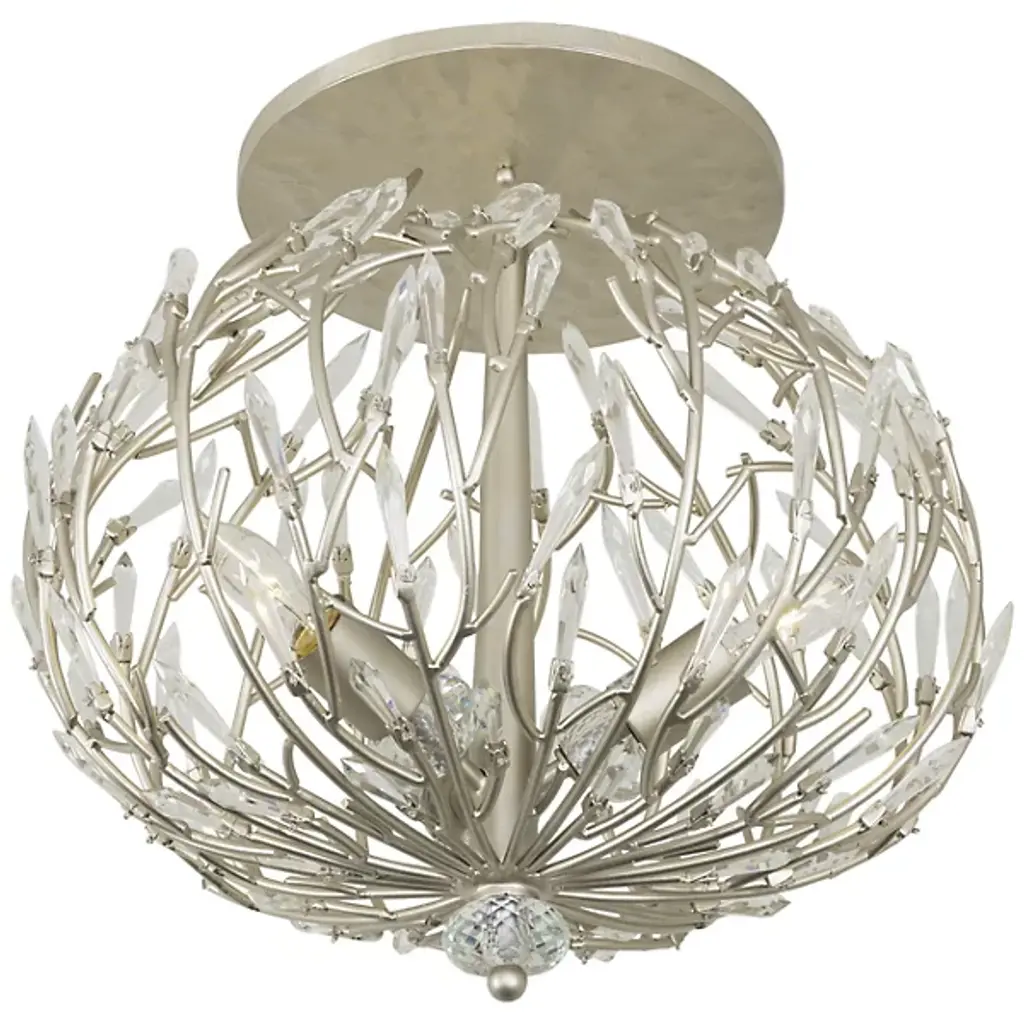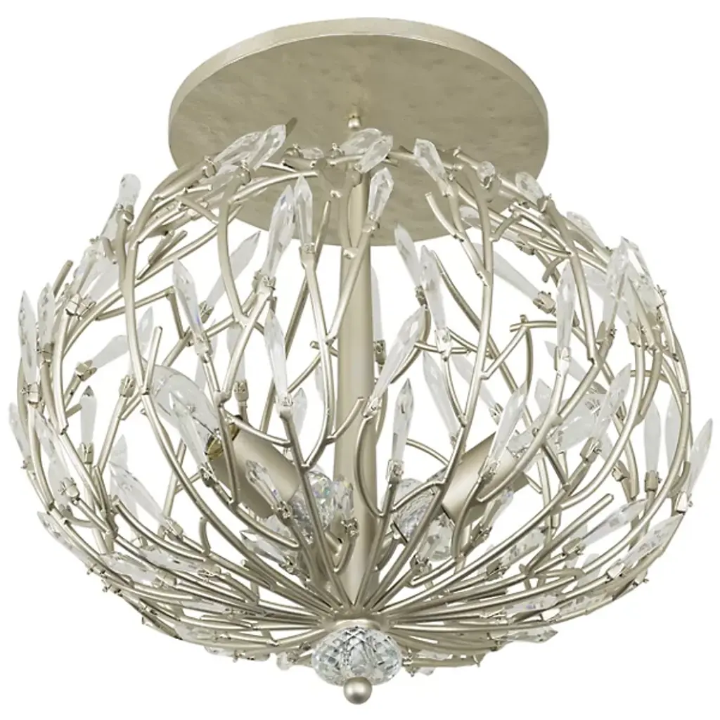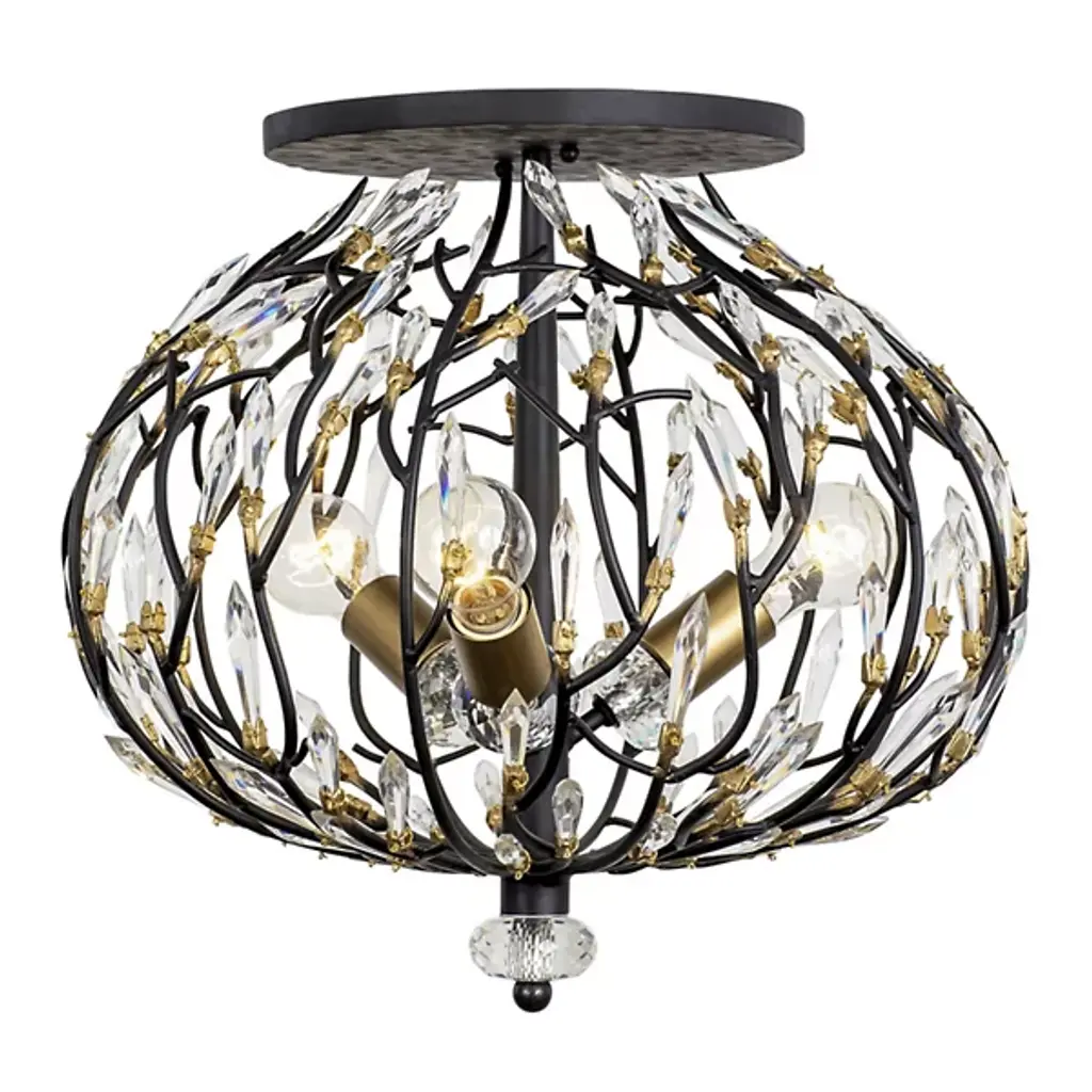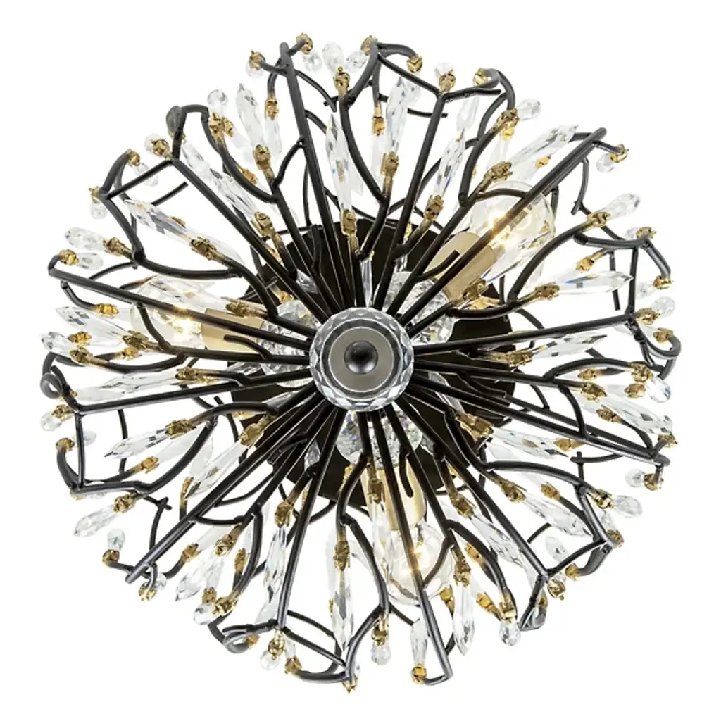 The Bask Semi-Flushmount from Varaluz is a captivating crystal creation that seamlessly blends fashion-influenced shapes with nature-inspired details. With pre-installed premium crystals and finishes in black with gold accents or gold dust, it offers a duality of silvery sparkles and glimmering gold. A part of the Smithsonian collection, this product is handmade using recycled steel and boasts unique elements, starting from the hand-hammered canopy. Bask not only exudes glamour and whimsy but also champions sustainability. Recognized as the 2018 ARTS Awards Green Award Winner, Varaluz offers stylishly sustainable choices like Bask, combining beauty with environmental responsibility.