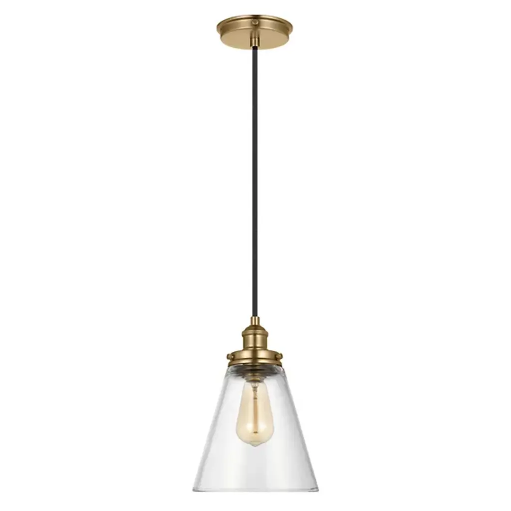 The antiquated lighting style armed and surrounded with an ultra-clean, new-age exterior, the Baskin Cone Pendant from Visual Comfort Studio, formerly known as Sean Lavin, revives the industrial era lamp with a contemporary look. A fine steel base gives the Baskin Cone Pendant a modernized feel, which works in direct contrast to the vintage filament bulb at its center. Surrounding the focal point is thick clear glass to diffuse light with a warm glow. Line several Baskins together for an efficient task or island lighting.