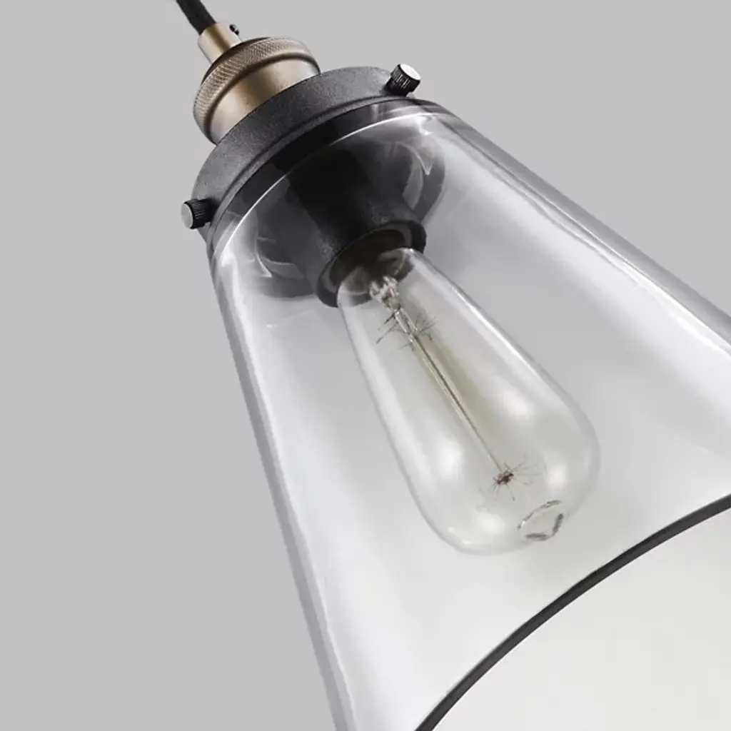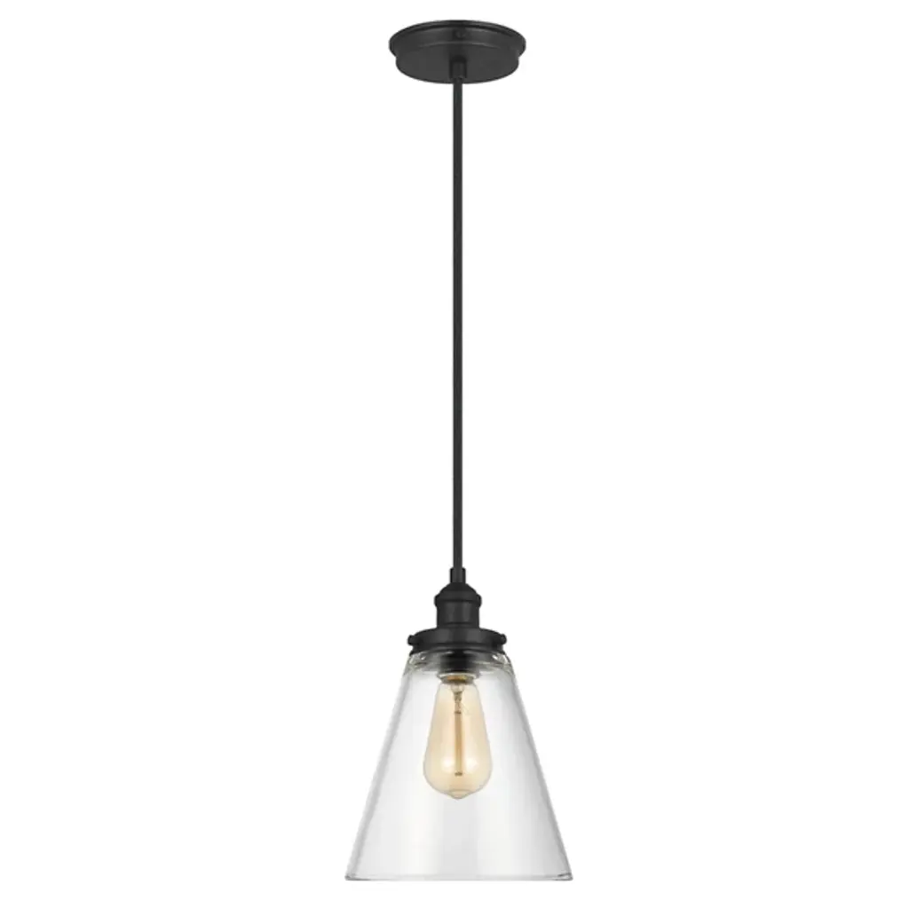 The antiquated lighting style armed and surrounded with an ultra-clean, new-age exterior, the Baskin Cone Pendant from Visual Comfort Studio, formerly known as Sean Lavin, revives the industrial era lamp with a contemporary look. A fine steel base gives the Baskin Cone Pendant a modernized feel, which works in direct contrast to the vintage filament bulb at its center. Surrounding the focal point is thick clear glass to diffuse light with a warm glow. Line several Baskins together for an efficient task or island lighting.