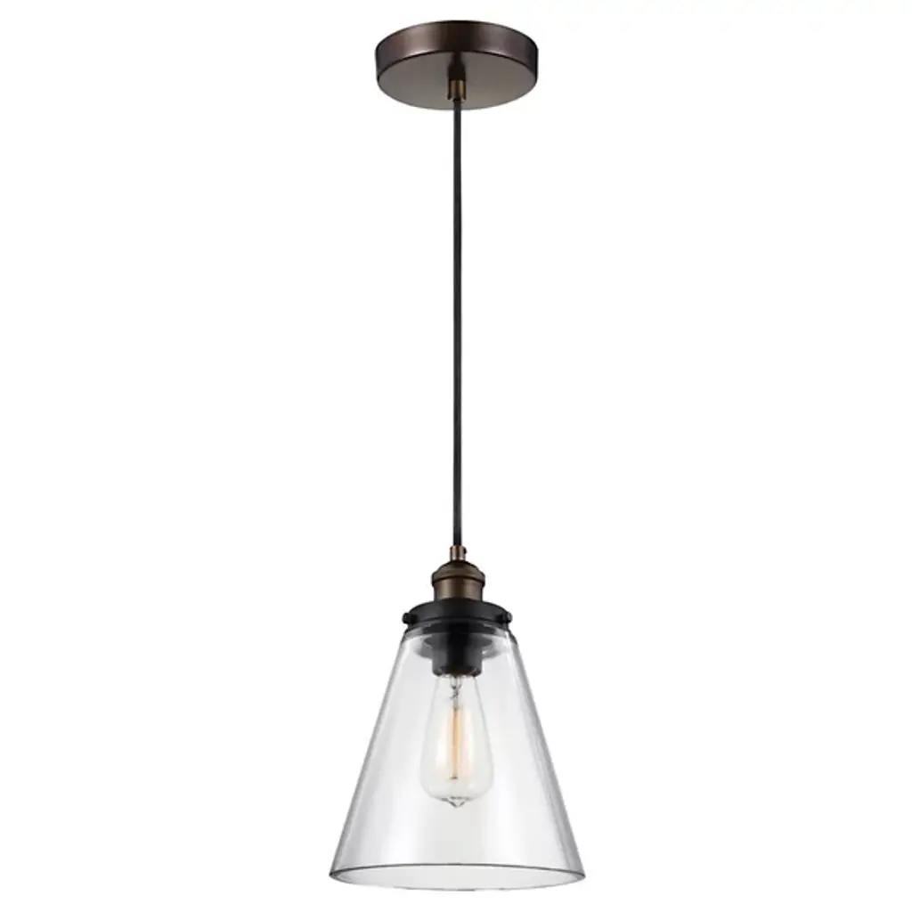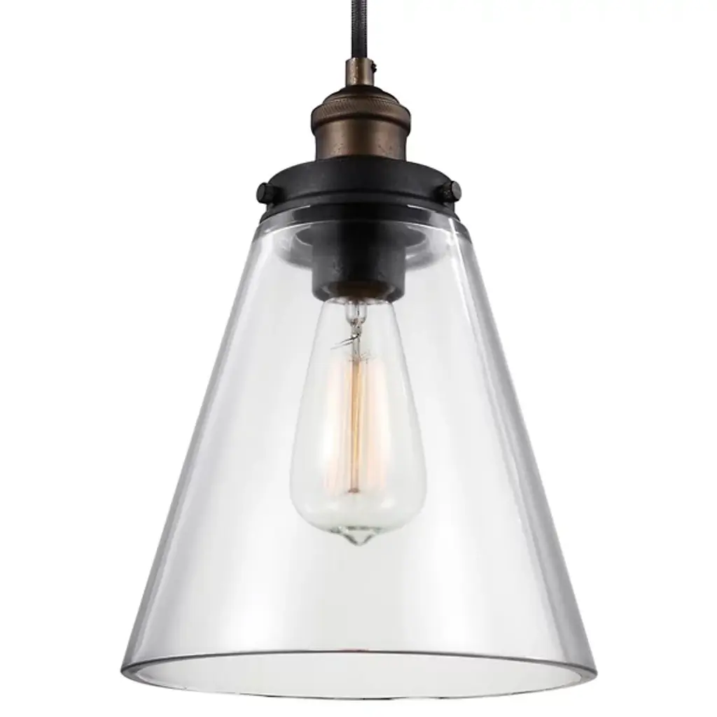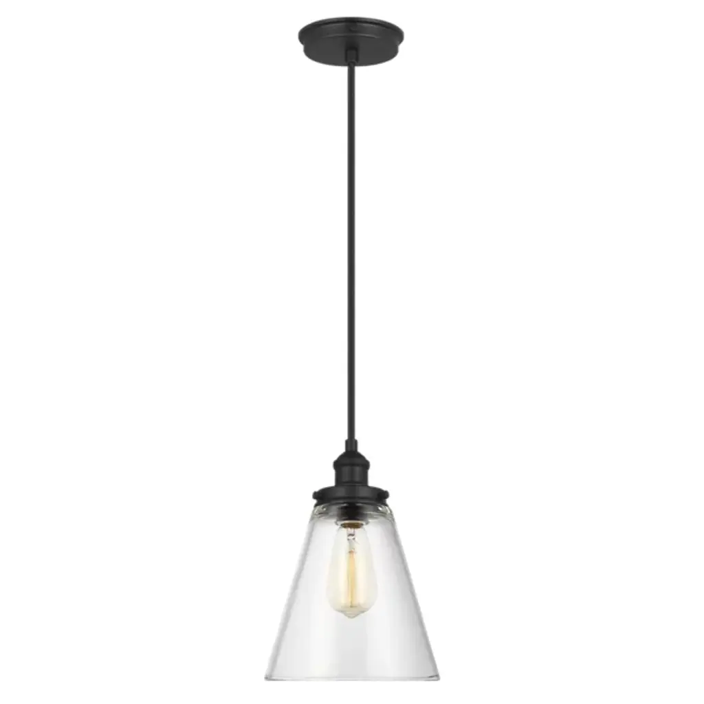 The antiquated lighting style armed and surrounded with an ultra-clean, new-age exterior, the Baskin Cone Pendant from Visual Comfort Studio, formerly known as Sean Lavin, revives the industrial era lamp with a contemporary look. A fine steel base gives the Baskin Cone Pendant a modernized feel, which works in direct contrast to the vintage filament bulb at its center. Surrounding the focal point is thick clear glass to diffuse light with a warm glow. Line several Baskins together for an efficient task or island lighting.