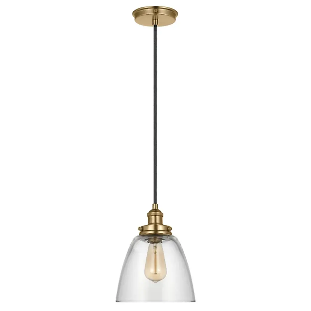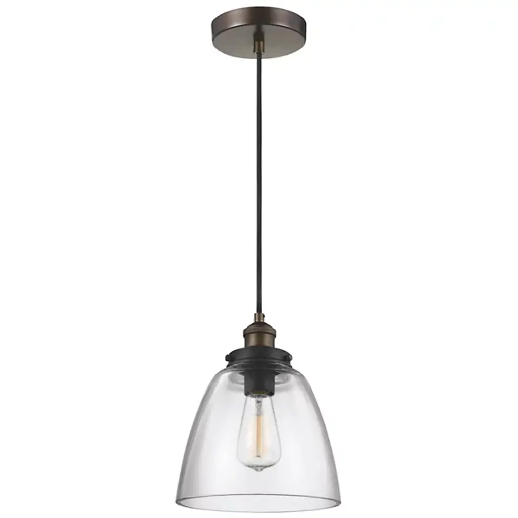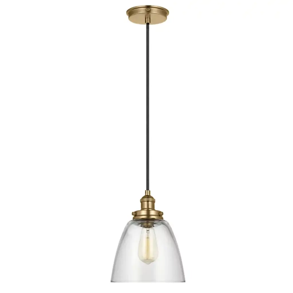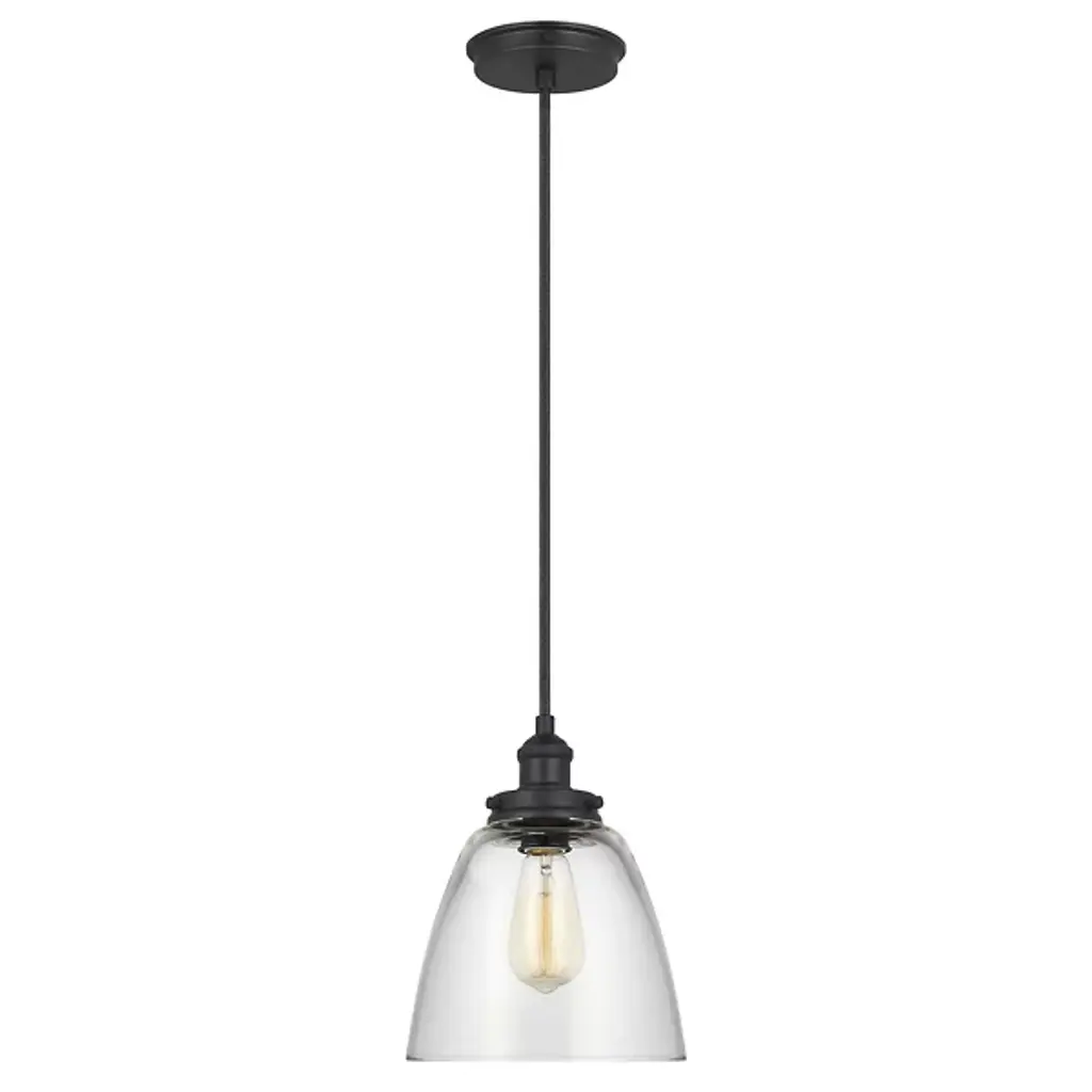 The antiquated lighting style armed and surrounded with sleek modernization, the Visual Comfort Studio, formerly known as Feiss, Baskin Dome Pendant revives the industrial era with a contemporary look. A fine steel exterior base gives the Baskin Dome Nickel Pendant a new-age feel, which works in direct contrast to the vintage filament bulb at the center. Surrounding the focal point is thick clear glass made durable for extra protection. Line several Baskins together for efficient task or island lighting.