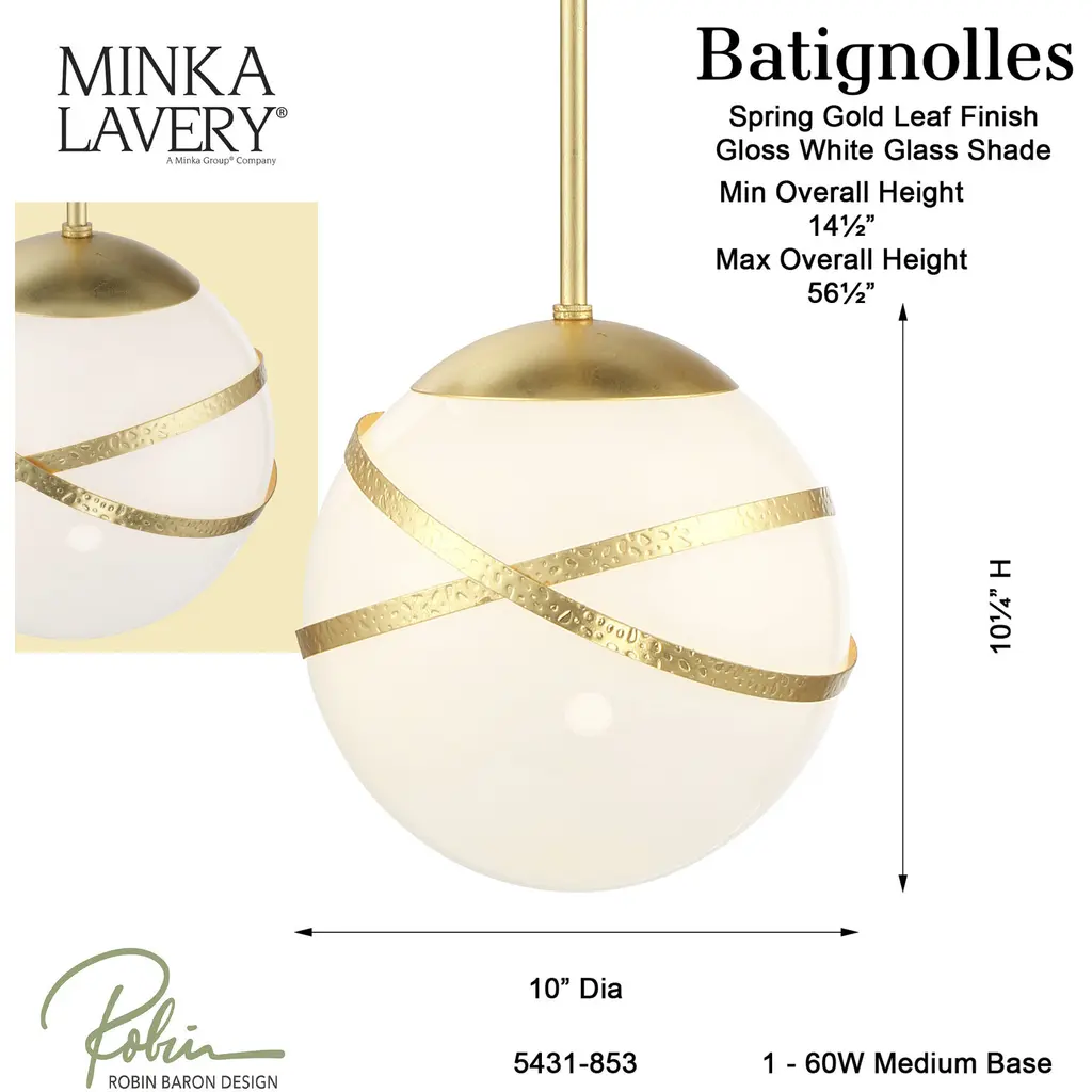 This 1 light Mini Pendant from the Batignolles collection by Minka-Lavery will enhance your home with a perfect mix of form and function. The features include a Spring Gold Leaf finish applied by experts. This item qualifies for free shipping!