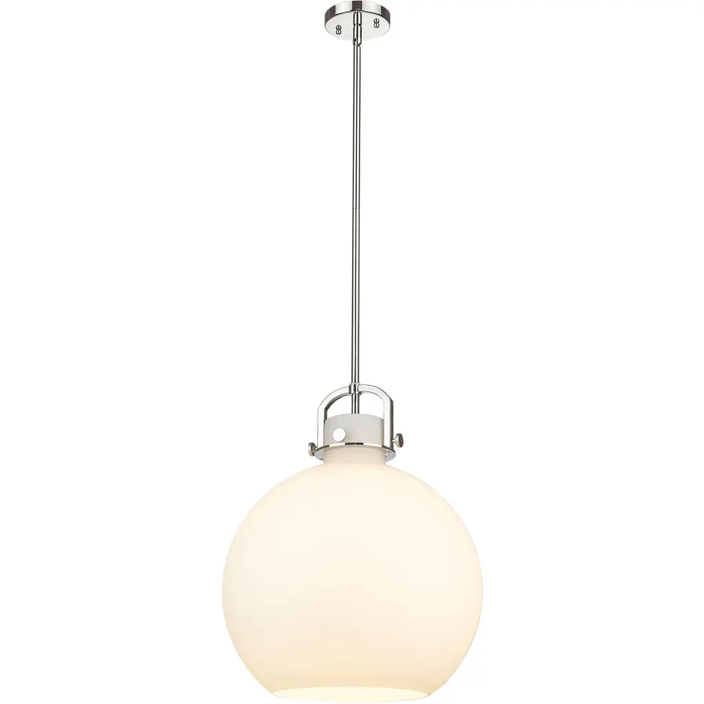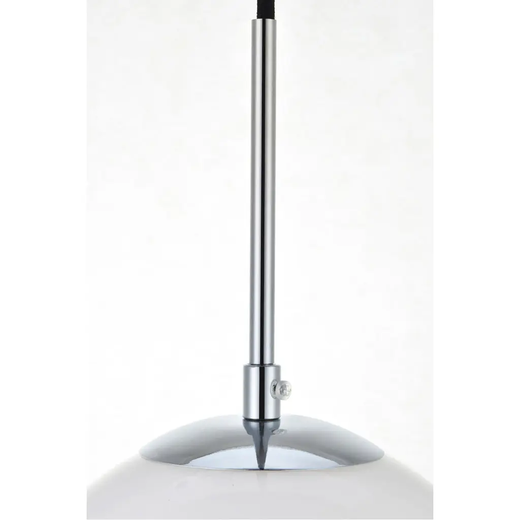 Refined style with a practical design, Baxter hanging pendant lamps bring cosmopolitan sophistication anywhere, especially to an entryway, office, bathroom, bedroom, or kitchen. The smooth iron frame features a disk-shaped canopy and comes in a chrome finish. An adjustable black cord allows you to vary the hanging height from 16 to 70 inches. The frosted white spherical glass shade remains open at the center to allow for effortless replacement of the filament-style bulb (not included). Living in the big city has never been this easy.