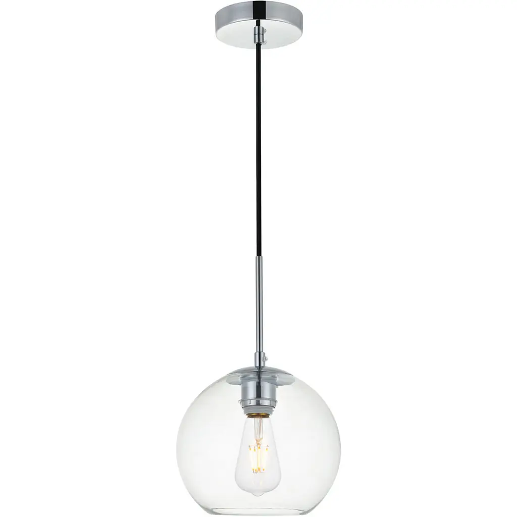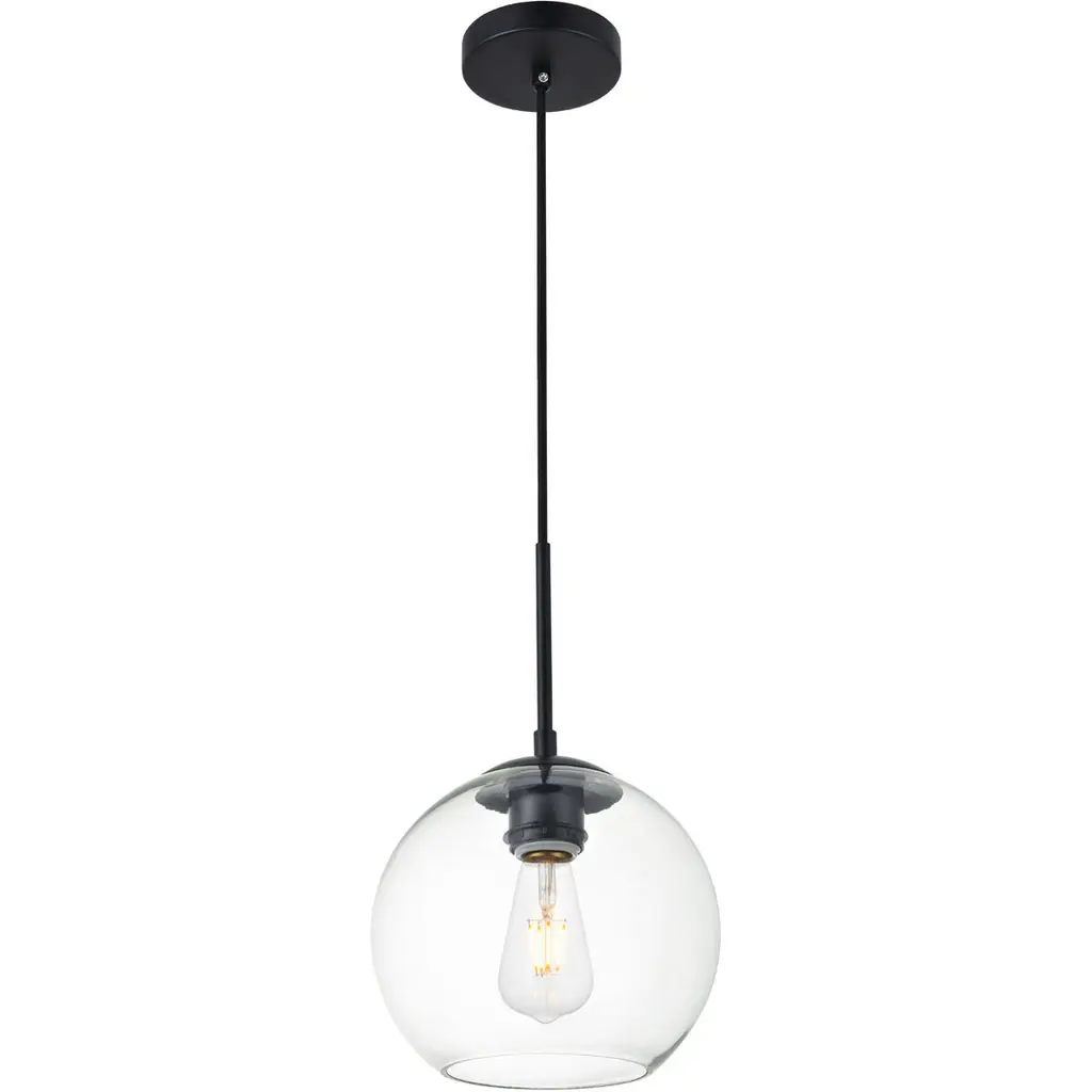 Refined style with a practical design, Baxter hanging pendant lamps bring cosmopolitan sophistication anywhere, especially to an entryway, office, bathroom, bedroom, or kitchen. The smooth iron frame features a disk-shaped canopy and comes in a black finish. An adjustable black cord allows you to vary the hanging height from 14 to 68 inches. The clear spherical glass shade remains open at the center to allow for effortless replacement of the filament-style bulb (not included). Living in the big city has never been this easy.