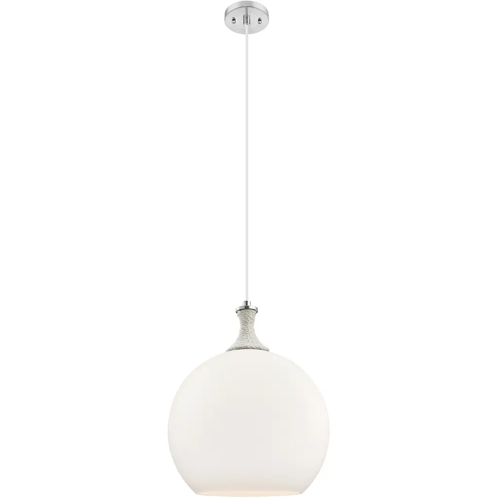 Refined style with a practical design, Baxter hanging pendant lamps bring cosmopolitan sophistication anywhere, especially to an entryway, office, bathroom, bedroom, or kitchen. The smooth iron frame features a disk-shaped canopy and comes in a chrome finish. An adjustable black cord allows you to vary the hanging height from 14 to 68 inches. The frosted white spherical glass shade remains open at the center to allow for effortless replacement of the filament-style bulb (not included). Living in the big city has never been this easy.