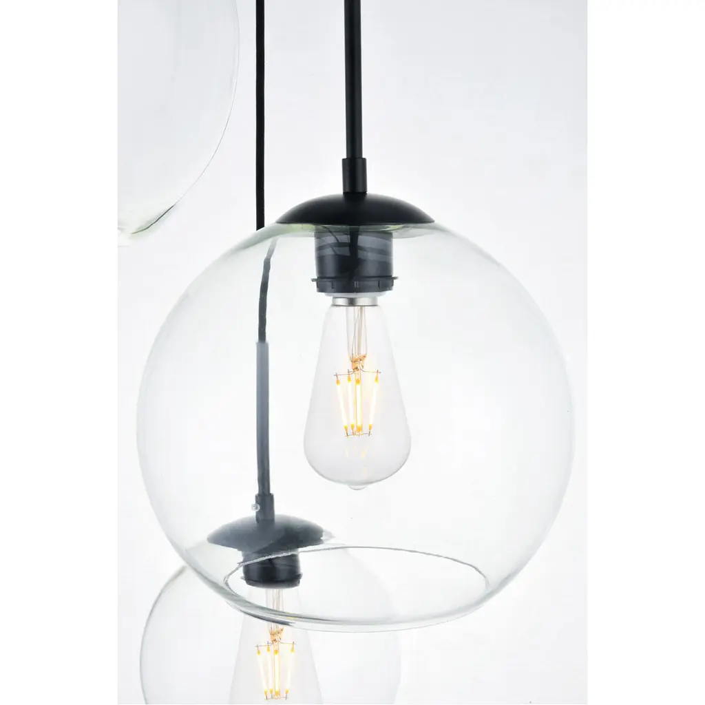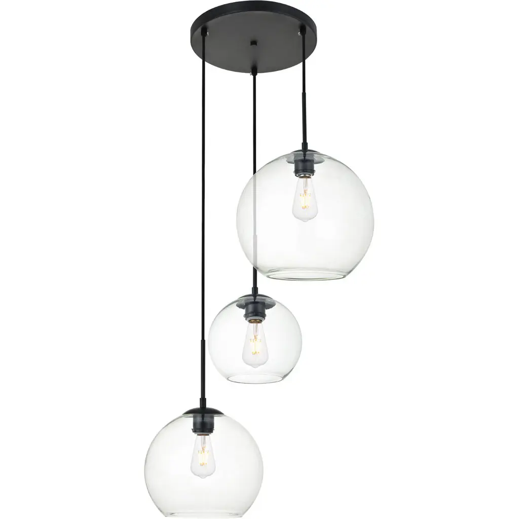 Refined style with a practical design, Baxter hanging pendant lamps bring cosmopolitan sophistication anywhere, especially to an entryway, office, bathroom, bedroom, or kitchen. The smooth iron frame features a disk-shaped canopy and comes in a black finish. Adjustable black cords allow you to modify the hanging height from 18 to 87 inches. Three clear spherical glass shades of different sizes are suspended at varying heights and remain open at the center to allow for effortless replacement of the filament-style bulbs (not included). Living in the big city has never been this easy.