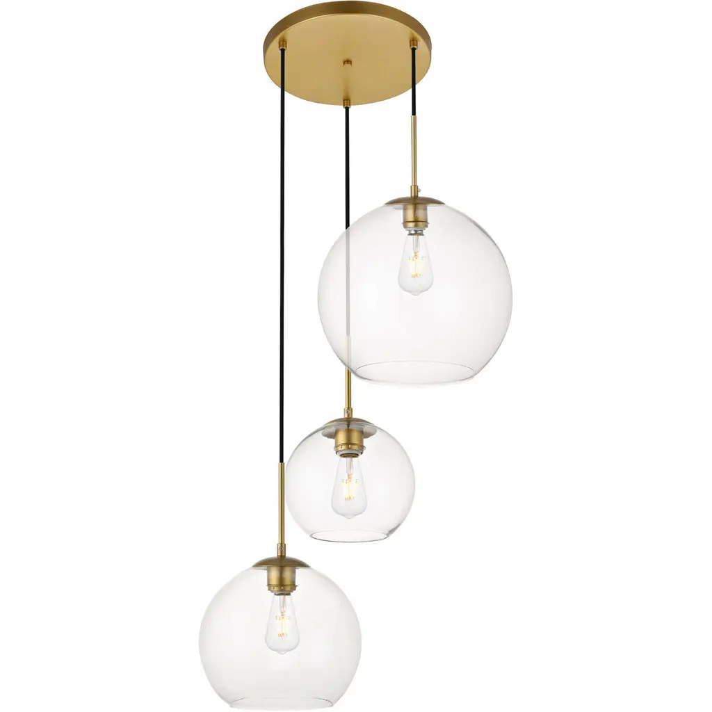 Refined style with a practical design, Baxter hanging pendant lamps bring cosmopolitan sophistication anywhere, especially to an entryway, office, bathroom, bedroom, or kitchen. The smooth iron frame features a disk-shaped canopy and comes in a brass finish. Adjustable black cords allow you to vary the hanging height from 18 to 87 inches. Three clear spherical glass shades of different sizes remain open at the center to allow for effortless replacement of the filament-style bulbs (not included). Living in the big city has never been this easy.