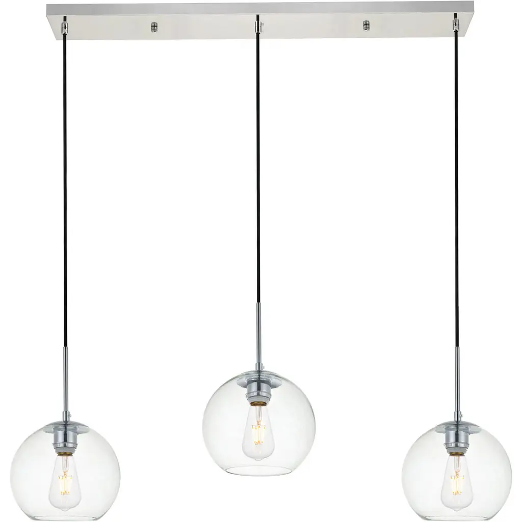 Refined style with a practical design, Baxter hanging pendant lamps bring cosmopolitan sophistication anywhere, especially to an entryway, office, bathroom, bedroom, or kitchen. The smooth iron frame features a rectangular canopy and comes in a black finish. Adjustable black cords allow you to vary the hanging height from 14 to 87 inches. A row of three identical clear spherical glass shades remain open at the center to allow for effortless replacement of the filament-style bulbs (not included). Living in the big city has never been this easy.