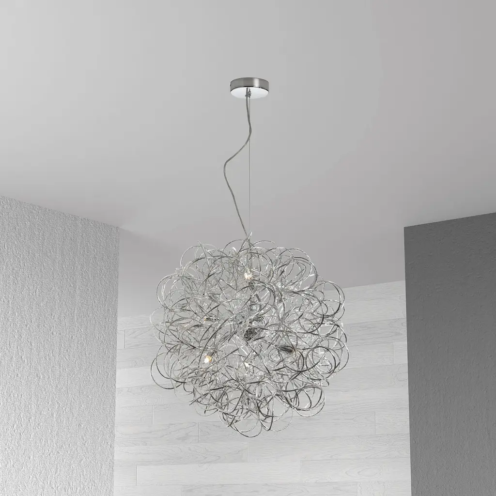 The intriguing Baya family of chandeliers offers an asymmetrical appeal that adds noticeable impact to your artistic home décor. A Baya chandelier is sure to attract the eye even as it offers an understated form of lighting. Rounded open wire forms in polished chrome or gold tone beautifully set off the glow of lighting that is reflected and redirected to subtle effect. Baya lighting has an artisanal sense of style that works well with both casual and formal furnishings.