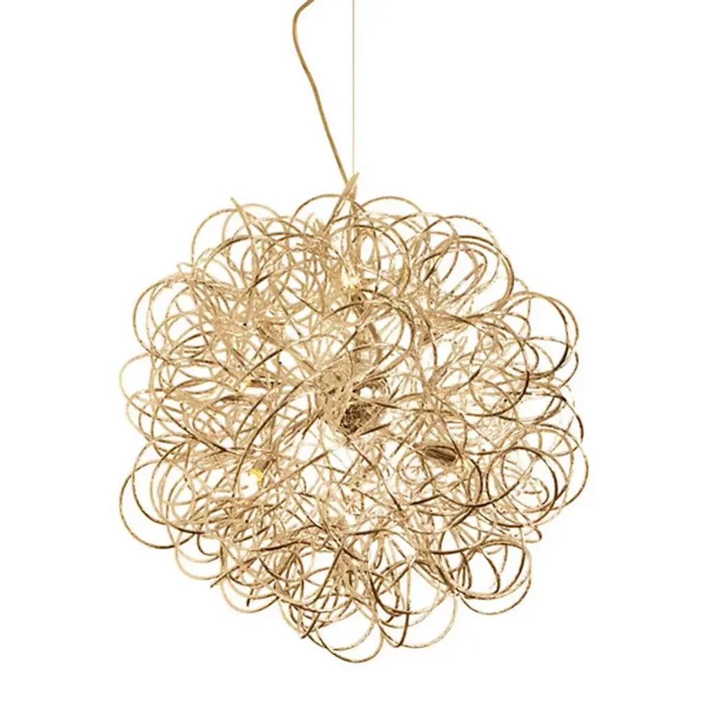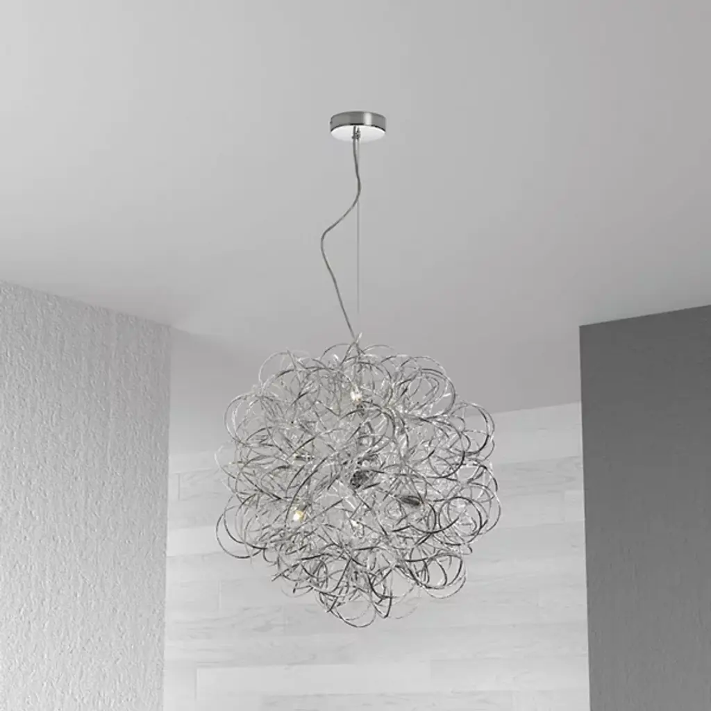 Wild and whimsical. The Baya Pendant by Dainolite is a contemporary addition to spaces with an asymmetrical, free form that catches the eye. With a spherical silhouette, rounded open wire forms wrap and twist around one another, creating an engaging and textured layer for light to playfully interact with and filter through. A round canopy and simple cable support this artful form as it adds a bright dose of fun to the rooms it is in.