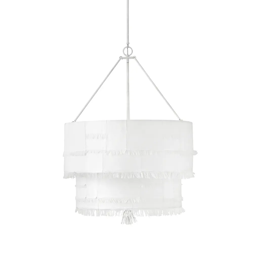 Inspired by the distressed fashion trend, the Baya Pendant Light from Hinkley brings a textured touch to your home. The delicate hand-sewn patchwork shade exudes a soft, elegant glow. Embracing coastal cottage style, it features a chic texture, a leather tassel, and dimmable lamping for a transitional statement. Finished in Textured Plaster, it adds an artistic touch to any room. Highlights