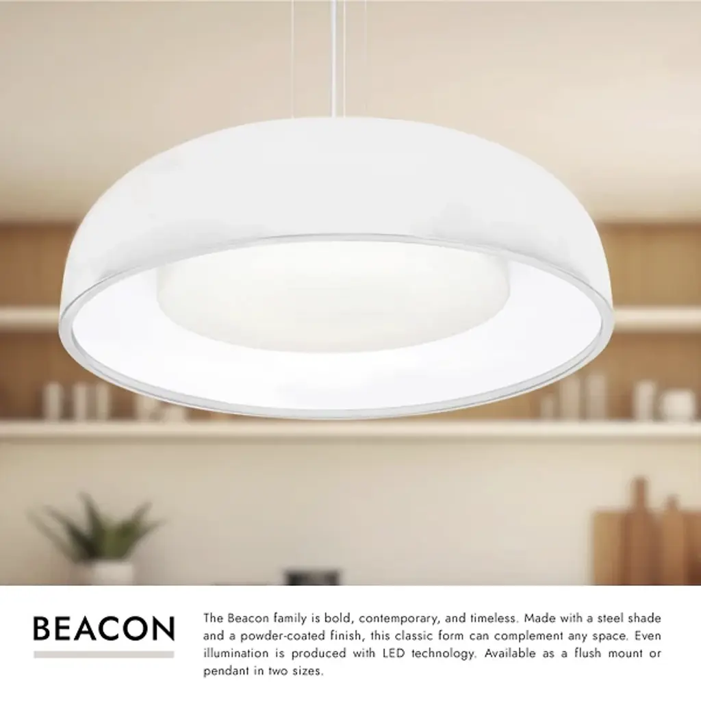 A simple design is paired with purpose-driven functionality in the Beacon LED Pendant by Kuzco Lighting. Its minimal design features a round-shaped shade made of steel. Its durable shade frames an integrated LED technology that, when lit, displays a beautiful and even glow with zero glare. A sophisticated lighting solution for any interior space.