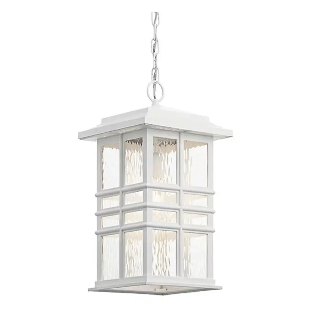 Warm ambient light will guide your way in the Beacon Square Outdoor Pendant by Kichler. This contemporary hanging fixture is inspired by classic craftsman architecture and designed with an updated take on the traditional lantern. Featuring clear hammered glass, the rippling texture is reminiscent of the ocean’s surface. Its matte frame is made of a material that is designed to withstand harsh outdoor conditions like saltwater and UV rays, making it ideal for hanging on decks, patios, or any outdoor area.