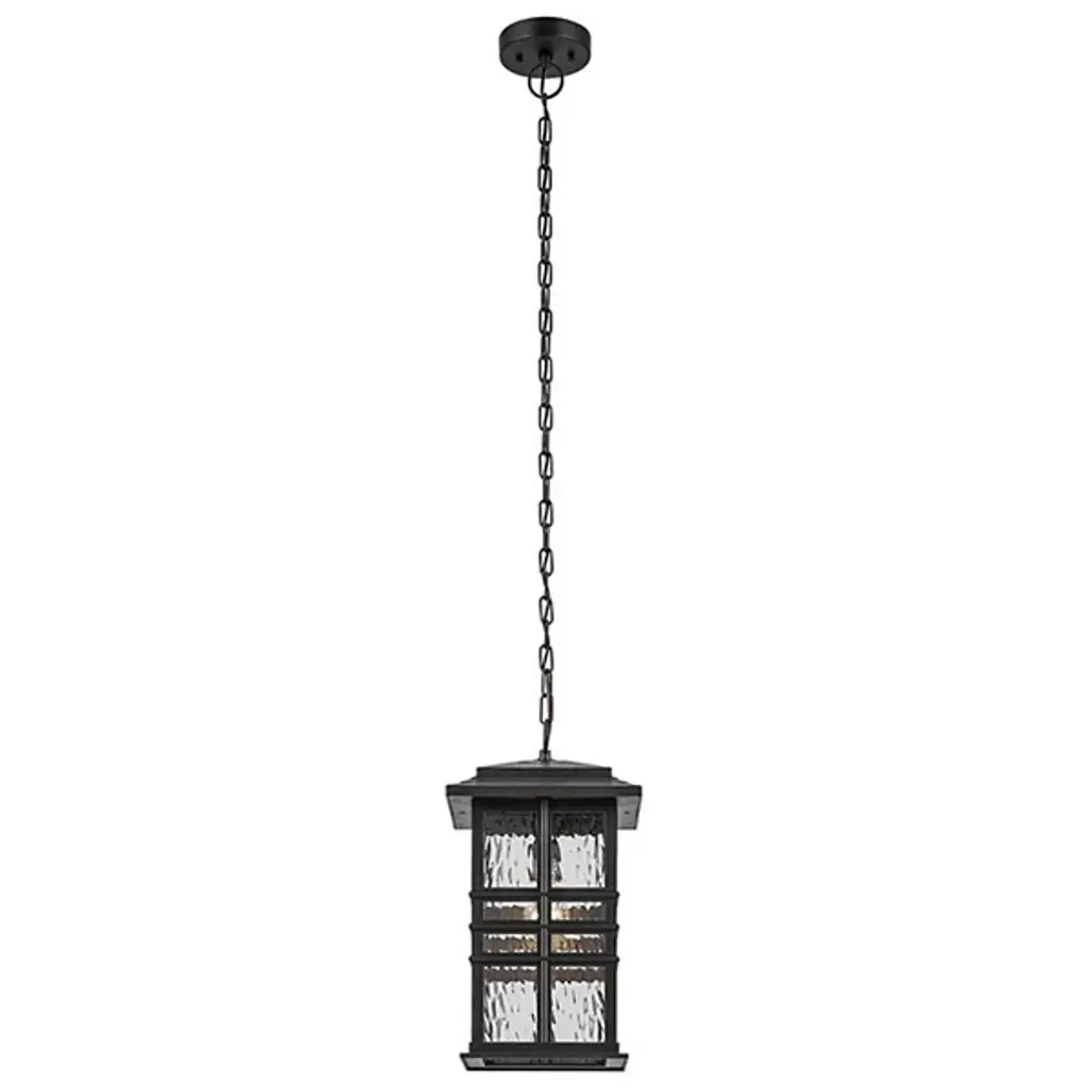 Warm ambient light will guide your way in the Beacon Square Outdoor Pendant by Kichler. This contemporary hanging fixture is inspired by classic craftsman architecture and designed with an updated take on the traditional lantern. Featuring clear hammered glass, the rippling texture is reminiscent of the ocean’s surface. Its matte frame is made of a material that is designed to withstand harsh outdoor conditions like saltwater and UV rays, making it ideal for hanging on decks, patios, or any outdoor area.