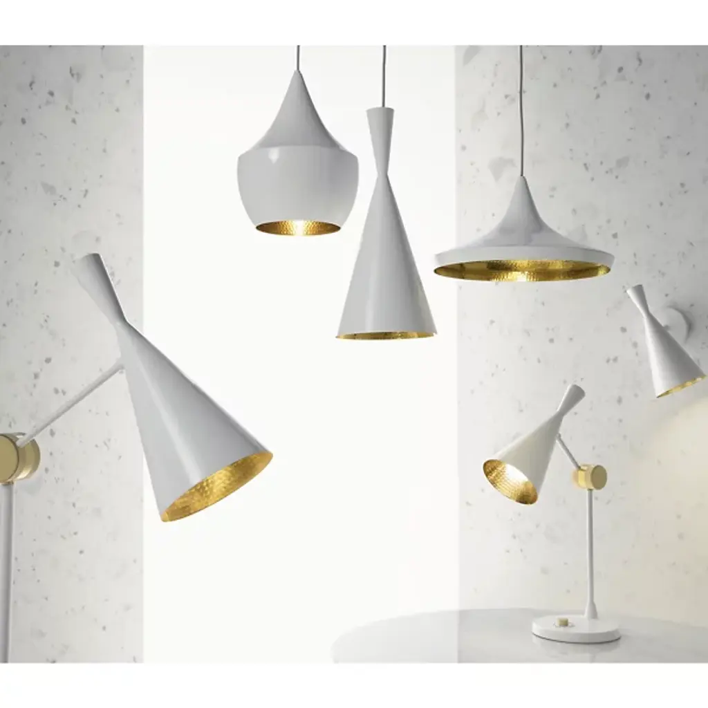 The Tom Dixon Beat Fat LED Pendant is part of a series of lights inspired by the handmade brass cooking pots and water vessels found in India. Made from spun and hand-beaten brass, the interior retains a plated, reflective finish while the exterior is painted a beautiful contrasting color tone.