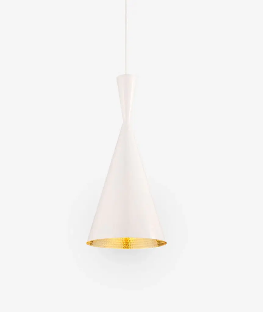 The Beat series of pendant lights was inspired by the sculptural simplicity of brass cooking pots and traditional water vessels on the Indian subcontinent. Spun and hand-beaten by renowned skilled craftsmen of Moradabad in Northern India, these pendants are an iconic silhouette in Tom Dixon's luxe range of decorative lighting.