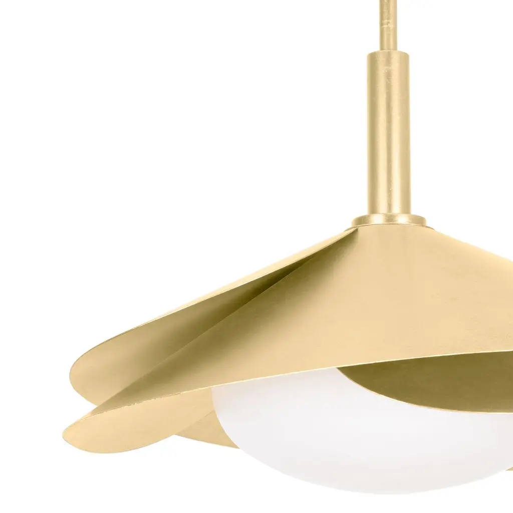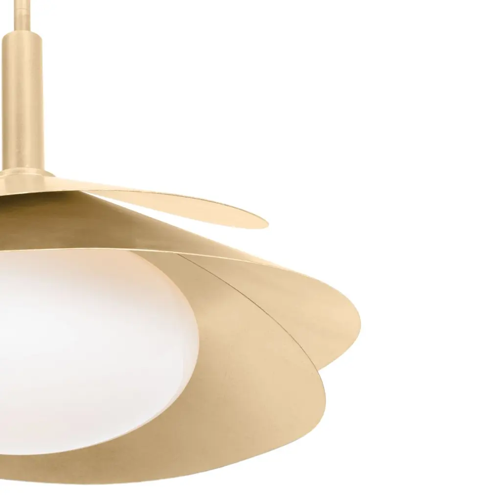 Overlapping petals swirl to form an artful yet sophisticated floral shade that draws the eye from any angle. Light from the opal glossy glass globe reflects off the petals to fill a space with a warm, golden glow. Beatrix is available as a flush mount and pendant in two sizes.