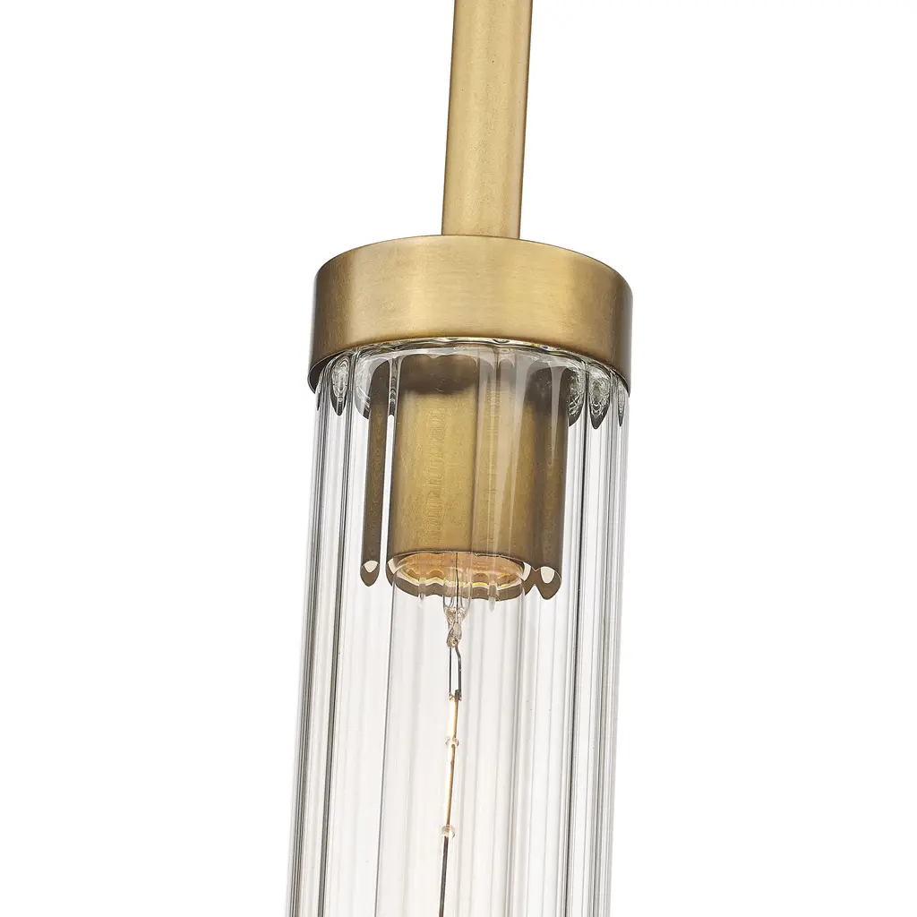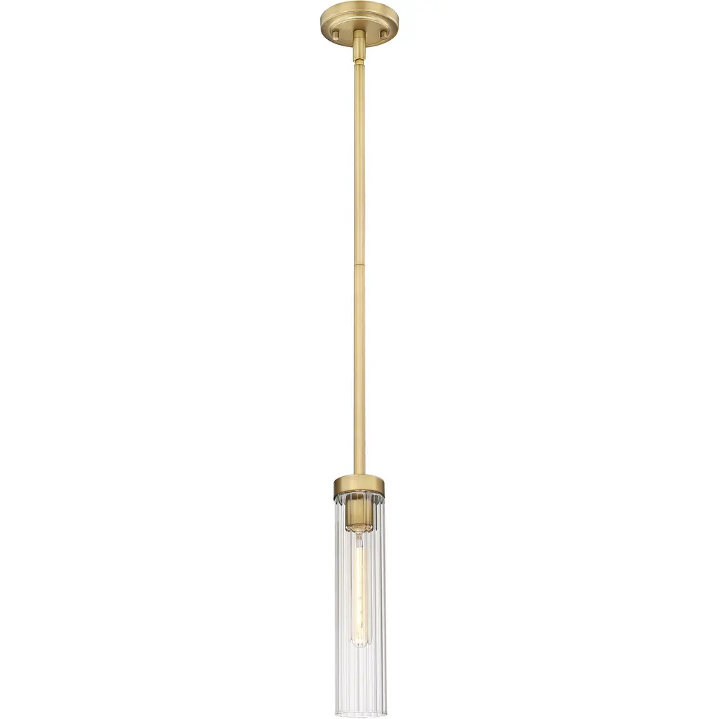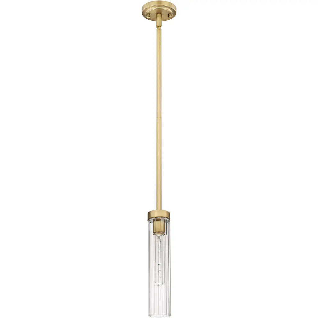 Warm, inviting style and finish effects add a sophisticated yet seamless look with a light fixture created to impress. This one-light pendant delivers a streamlined silhouette blending rubbed brass finish steel framing and accents with a charming clear glass cylinder shade, creating a vertical optical division. Choose this stylish pendant for illuminating a nook, living area, or foyer.