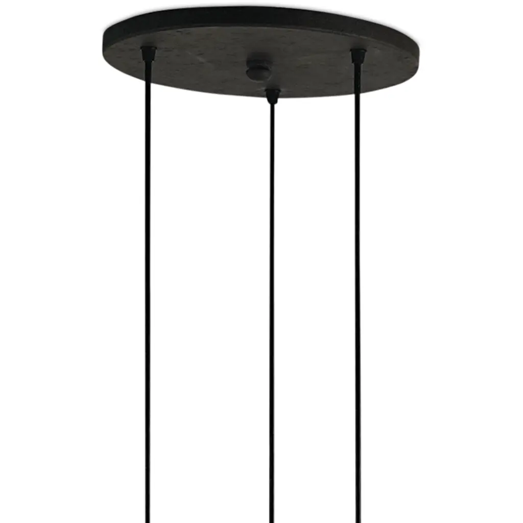 Voluptuous glass spheres dangle at differing heights from the canopy of the Beckett Trio Pendant, its wrought iron elements treated to an Emery rust finish. The mid-century modern vibe of this light fixture is heightened by the glass globes that measure 9 inches in diameter. The Beckett has an adjustable hanging length and there is also a one-globe pendant in the Becket family of fixtures.